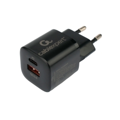 MP3 charger, 1 x Type A, 1x Type C 20W, 110-240V -> QC 3.0 + 1 x 5V/3A, Black