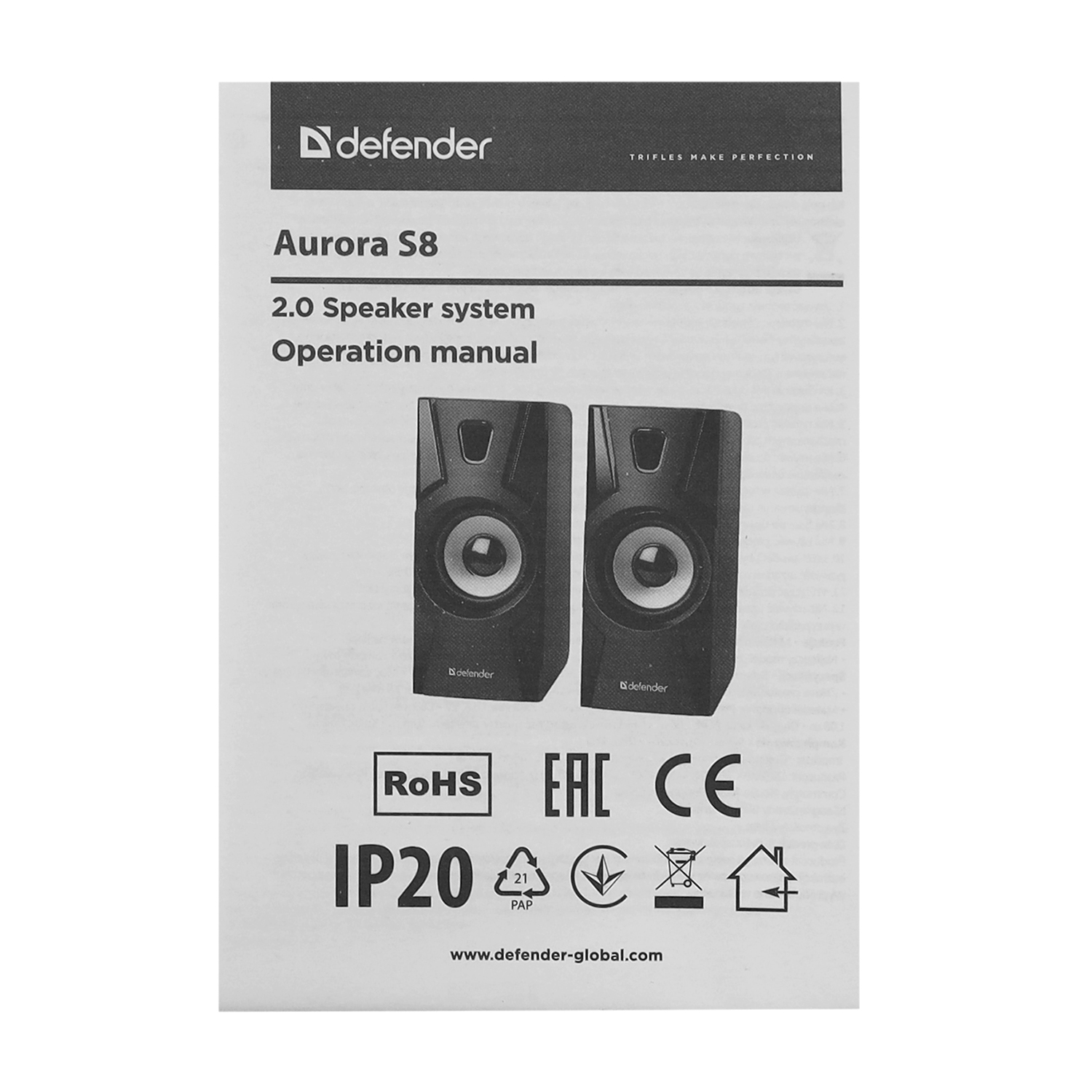 Акустическая система Defender Aurora S8, Черный SPK active (2.0), 8W*2, 70-20000 Hz, black (65408)