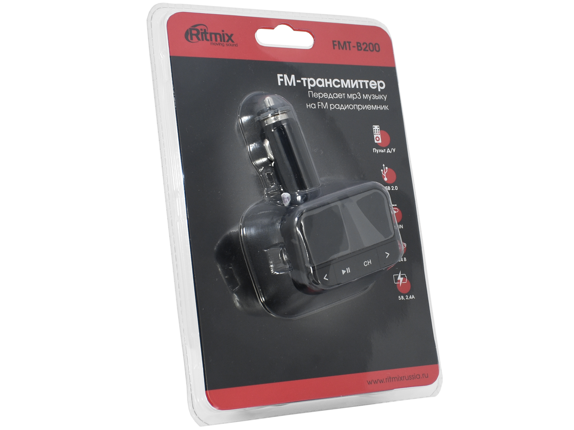 MP3 car FM modulator + USB charger, Ritmix FMT-B200, USB/mSD -> MP3 player, AUX, LED, IR