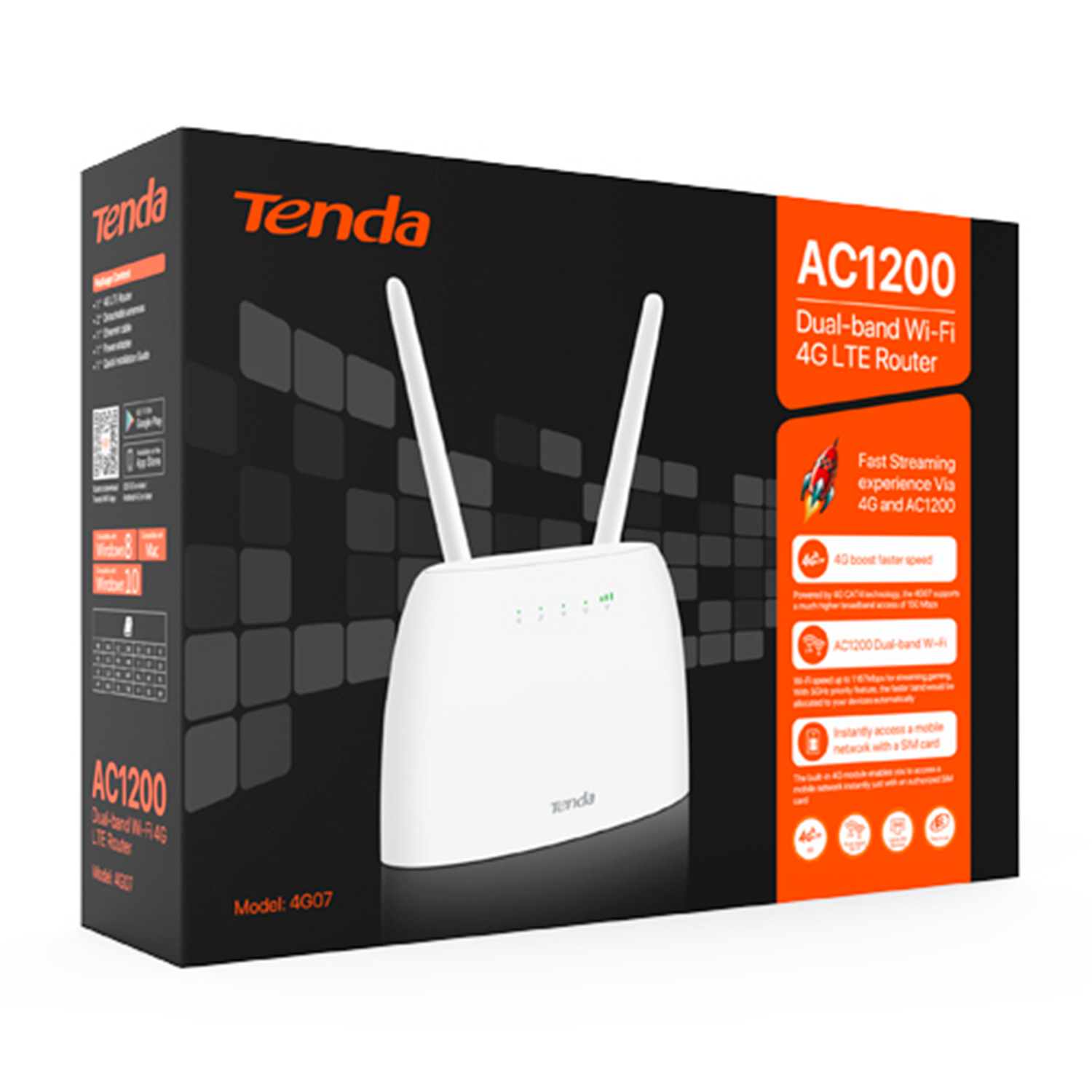 Wireless router, Tenda 4G07, WiFi 4 (300M), 2 x 10/100M + 4G/VoLTE, 2ant. 5dBi