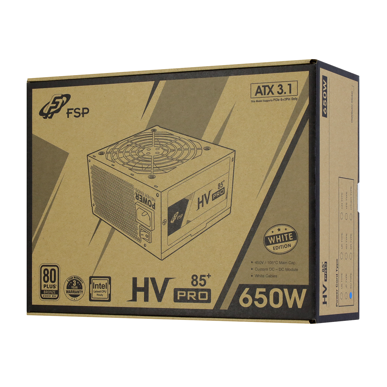 Блок питания ATX FSP HV PRO FSP650-51AAC W, 650W, White Power supply 80plus Bronze
