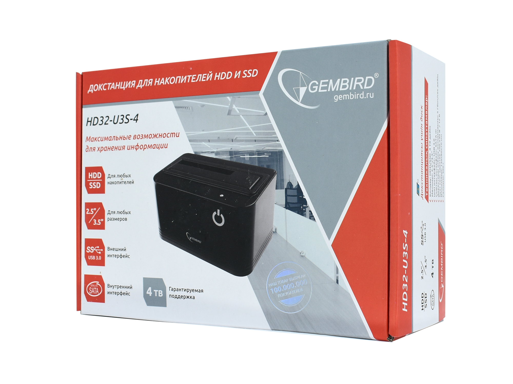 Док-станция для 2,5"/3,5" жестких дисков Gembird, HD32-U3S-4 External Docking Station, USB3.0 for SATA HDD, black