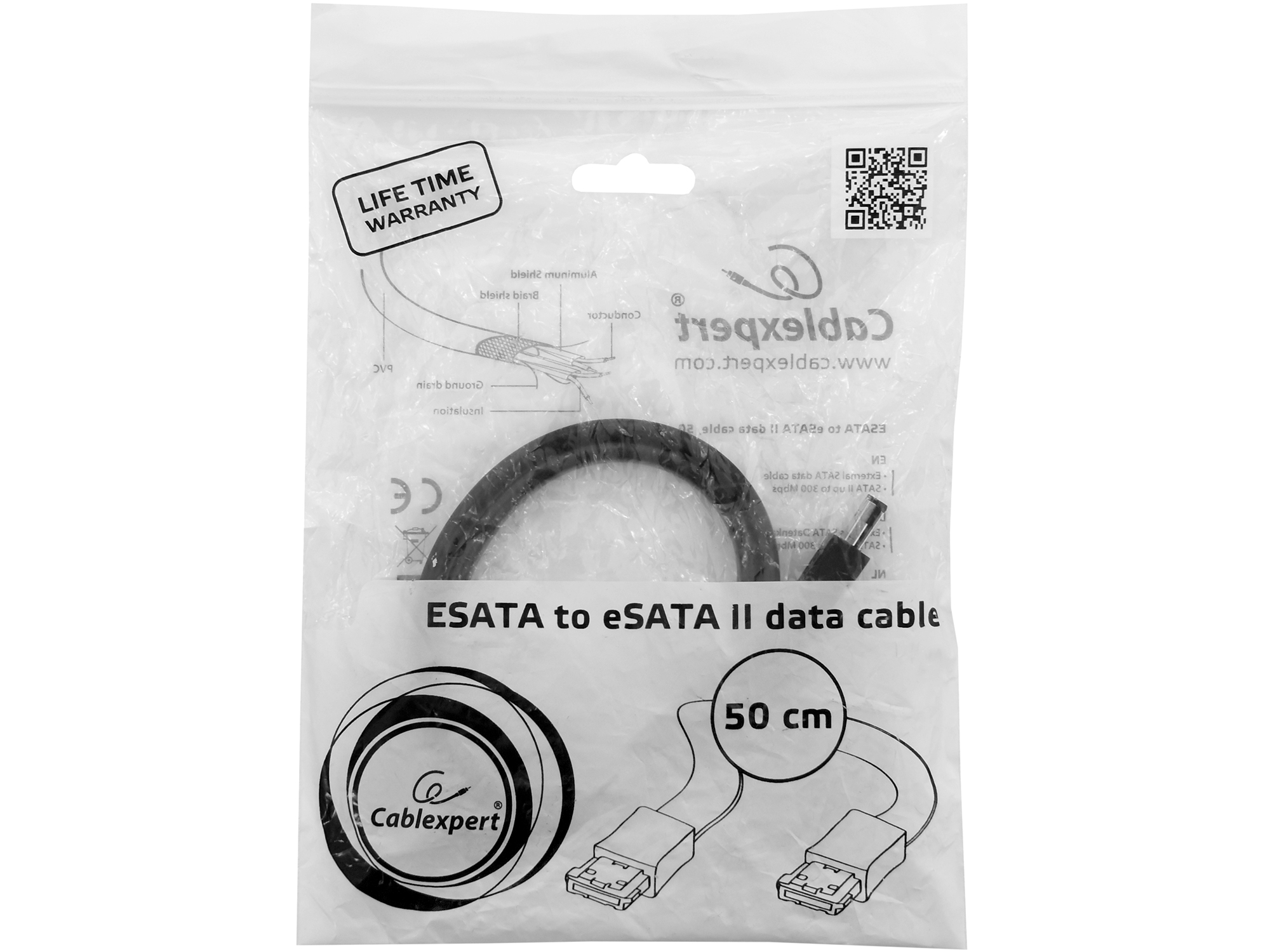 Кабель eSATA to eSATA, Cablexpert CC-ESATA-DATA-6, 0.5м Cable CC-ESATA-DATA, black