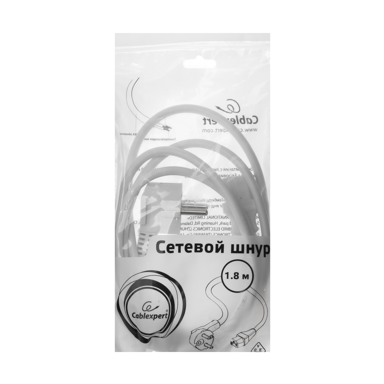 Кабель питания, Cablexpert PC-186W-VDE, 1.8м, Белый Cable power, Schuko - C13, white