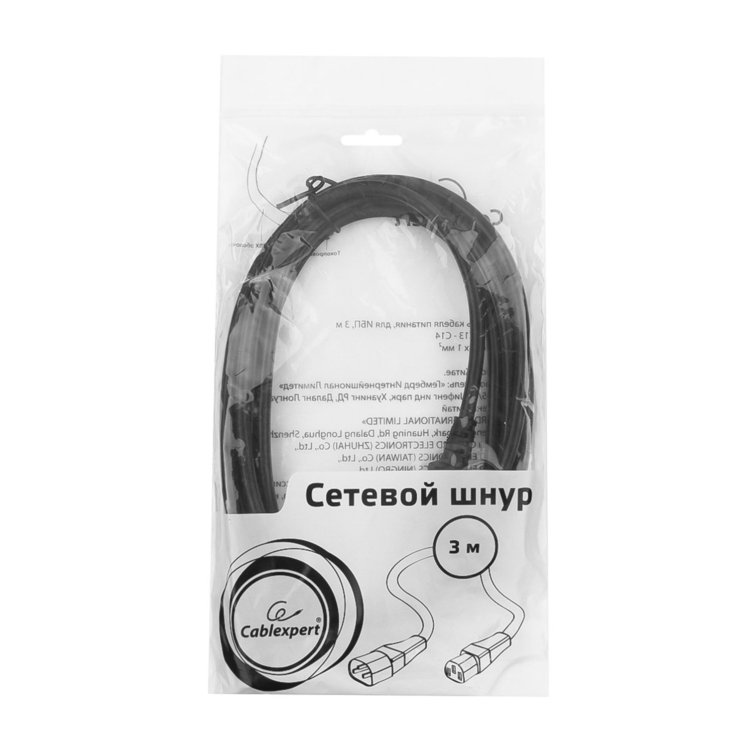 Кабель питания, Cablexpert PC-189-1-3M, 3м Cable power, C13 - C14, системный блок/монитор - ИБП, black