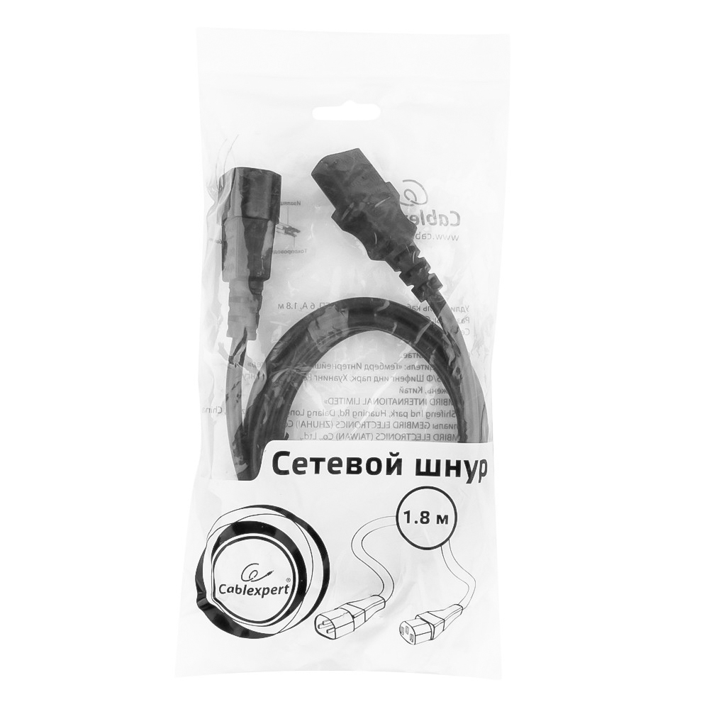 Кабель питания, Cablexpert PC-189-VDE, 1.8м Cable power, C13 - C14, системный блок/монитор - ИБП, black