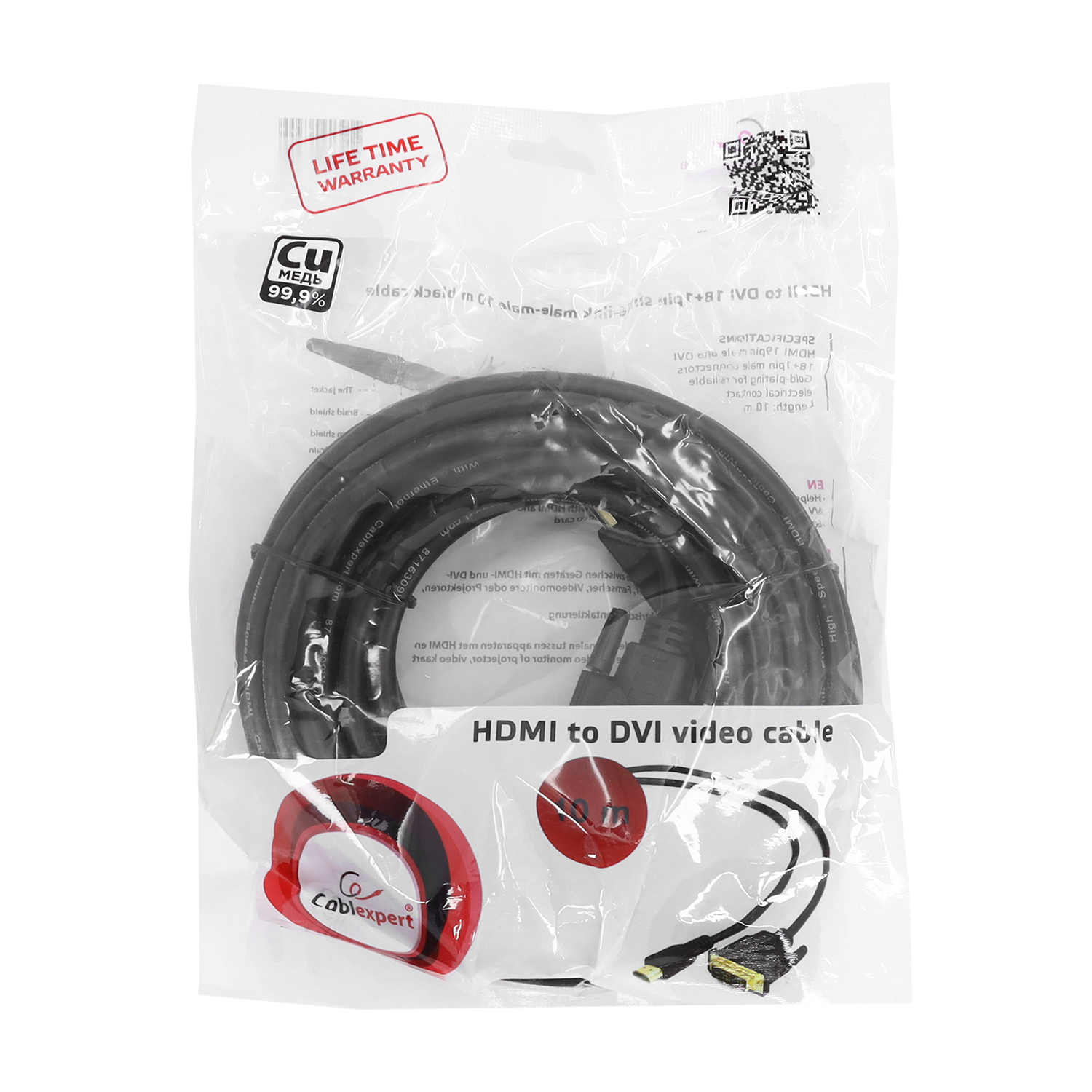 Кабель SVGA, Cablexpert CC-HDMI-DVI-10MC, 10м Cable DVI-D to HDMI, m/m, 18+1pin/HDMI