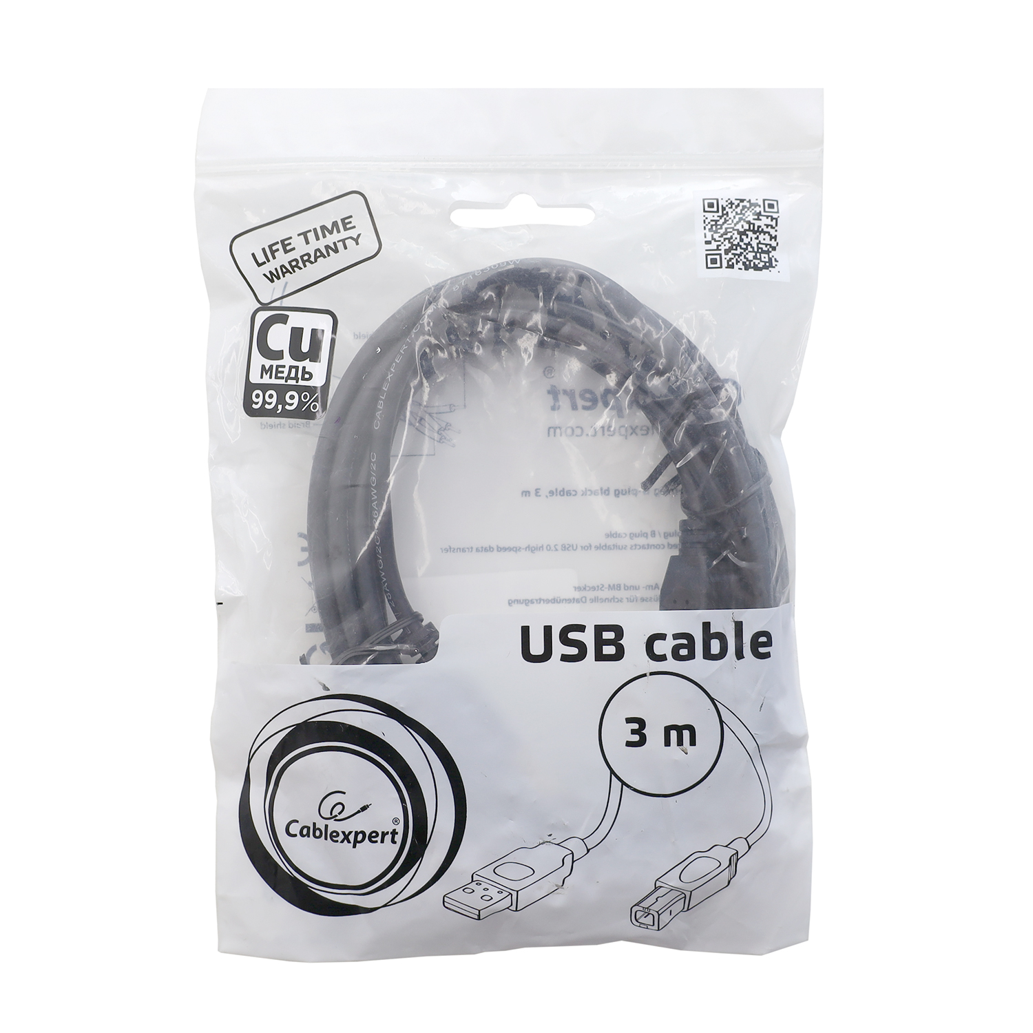 Cable USB Type A-B, 3м, Cablexpert CCP-USB2-AMBM-10, USB 2.0, black