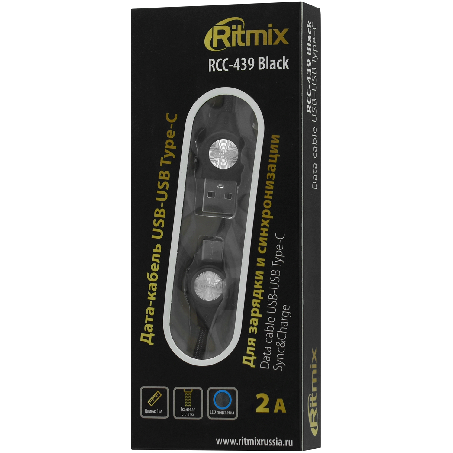 Cable USB Type A - Type C, 1.0м, Ritmix RCC-439 Black, 2A