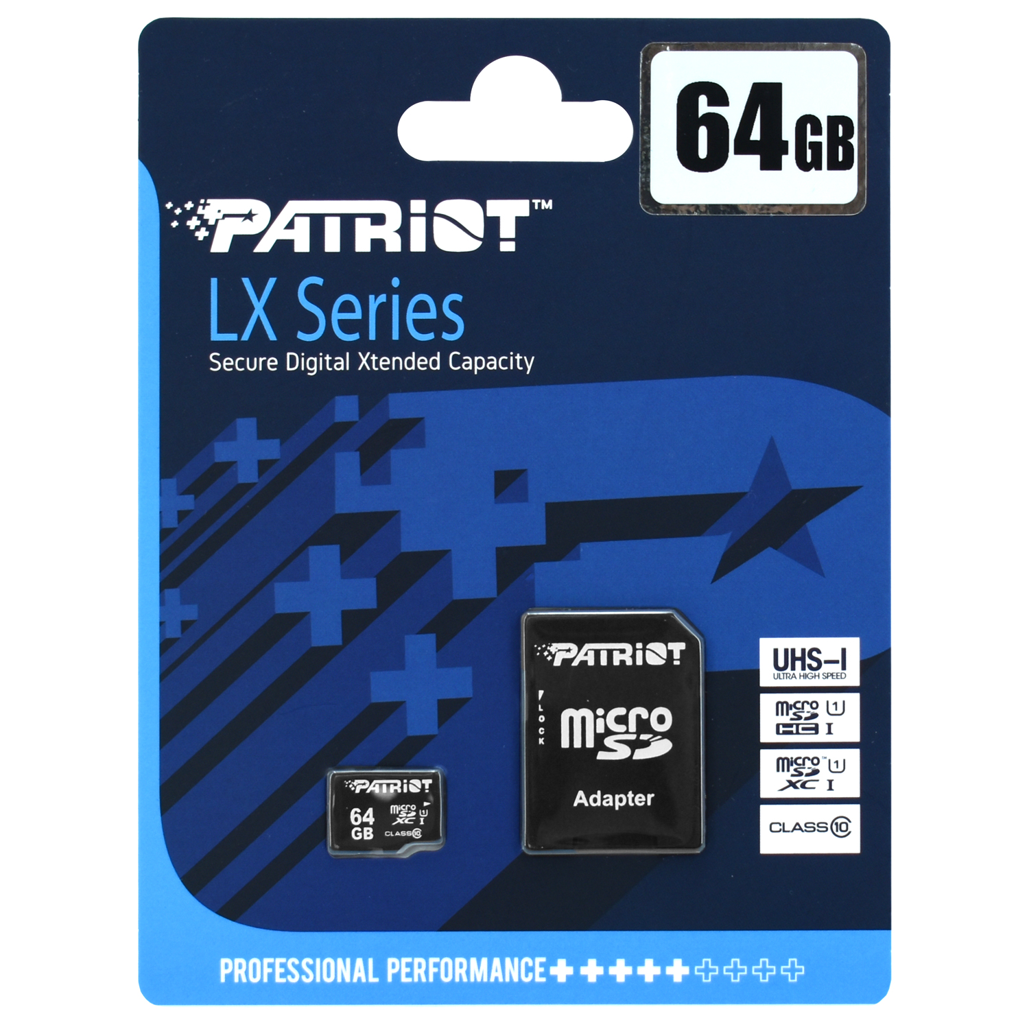 MemoryCard microSDXC 64GB, Patriot LX Series PSF64GMCSDXC10, Class 10, UHS-I, + adapter SD