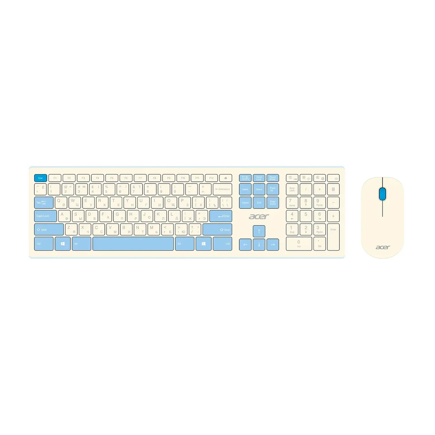 Клавиатура Acer Acer OCC205, Белый/голубой KeyBoard + mouse, USB, Wireless, rus/lat, White/Blue