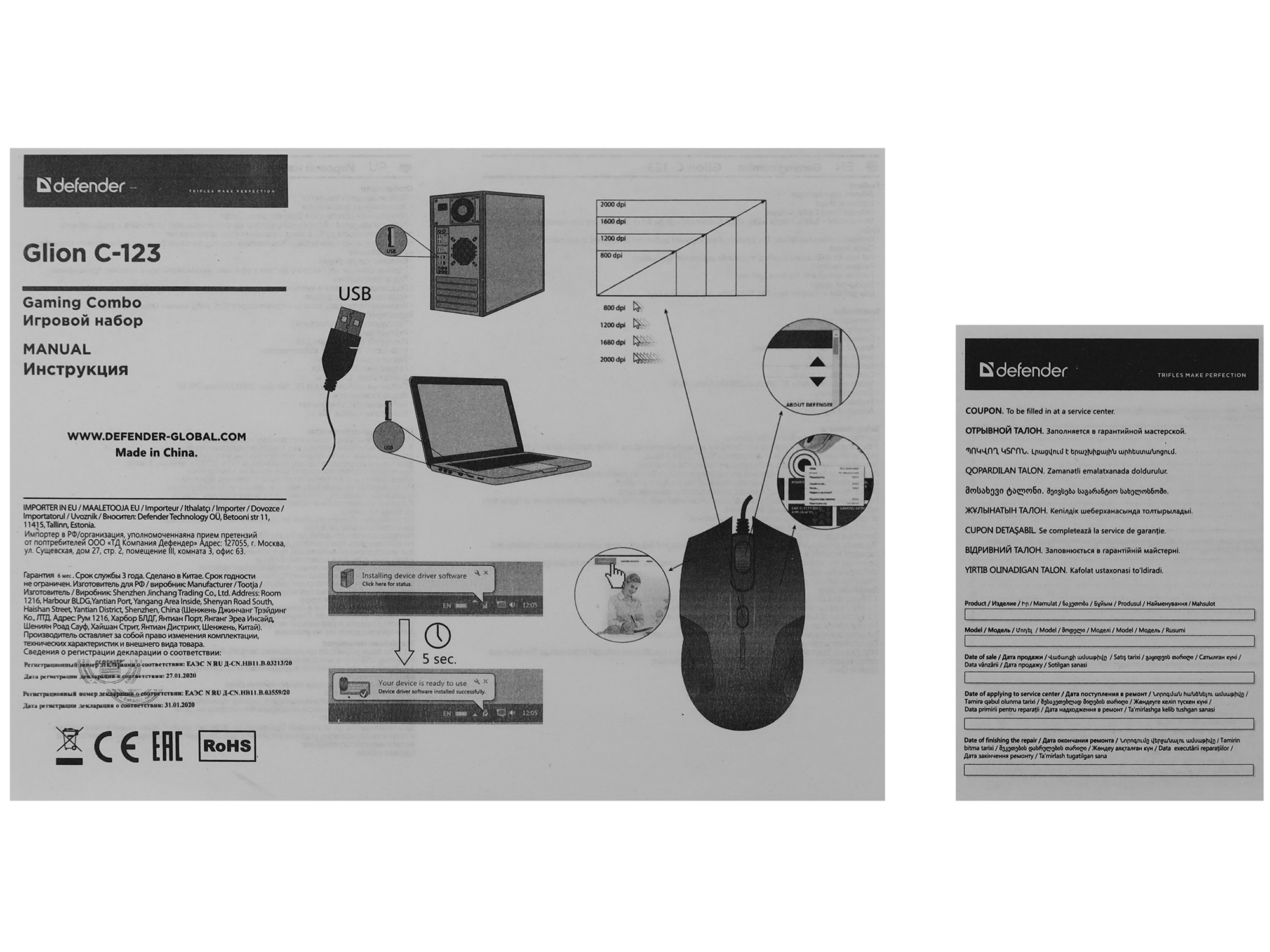 Клавиатура и мышь, USB, Defender GLION C-123, (45123) KeyBoard + mouse, black