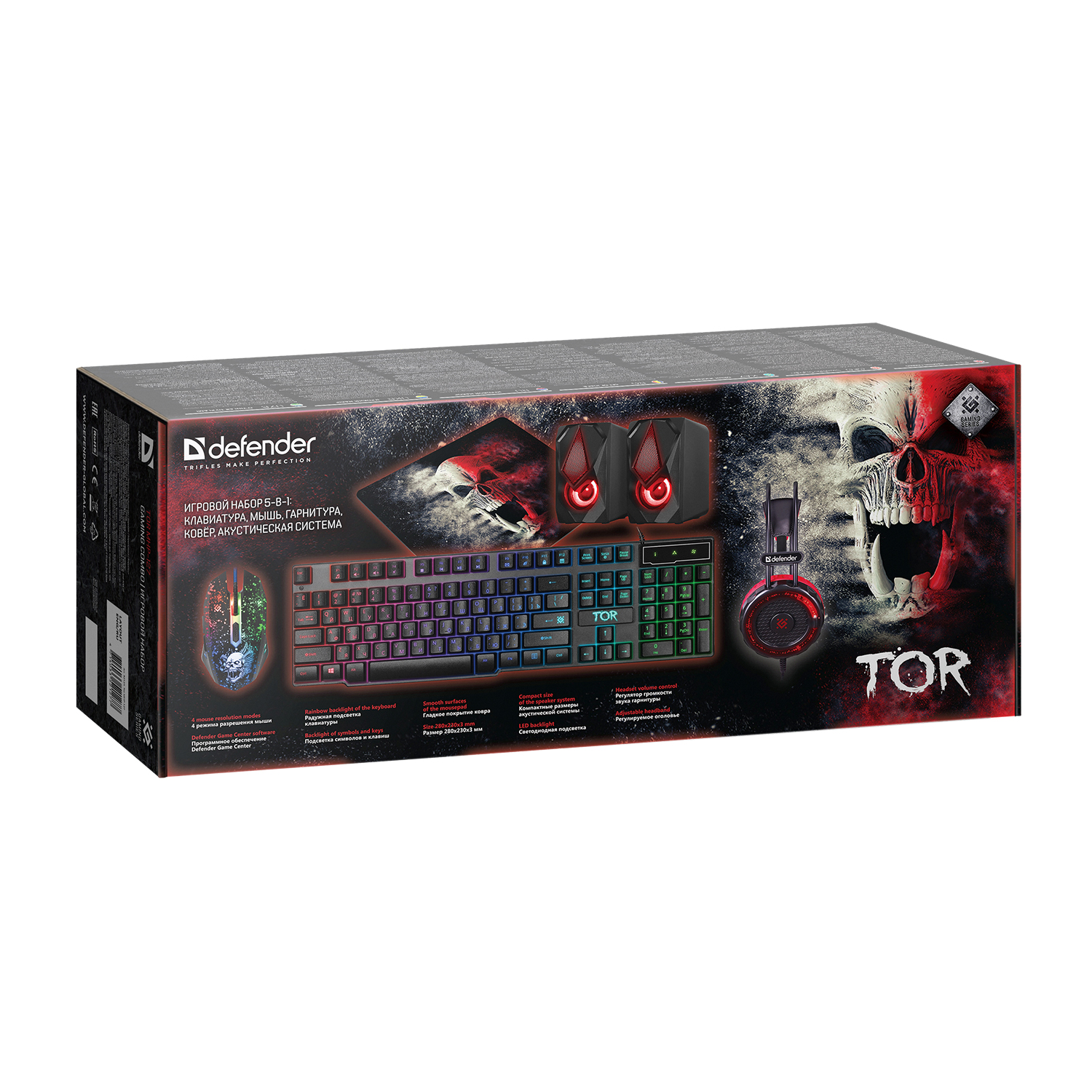 Клавиатура+мышь+коврик для мыши+ наушники+колонки, USB, Defender TOR MHP-127, 52127 KeyBoard + mouse+pad+headphone+spk