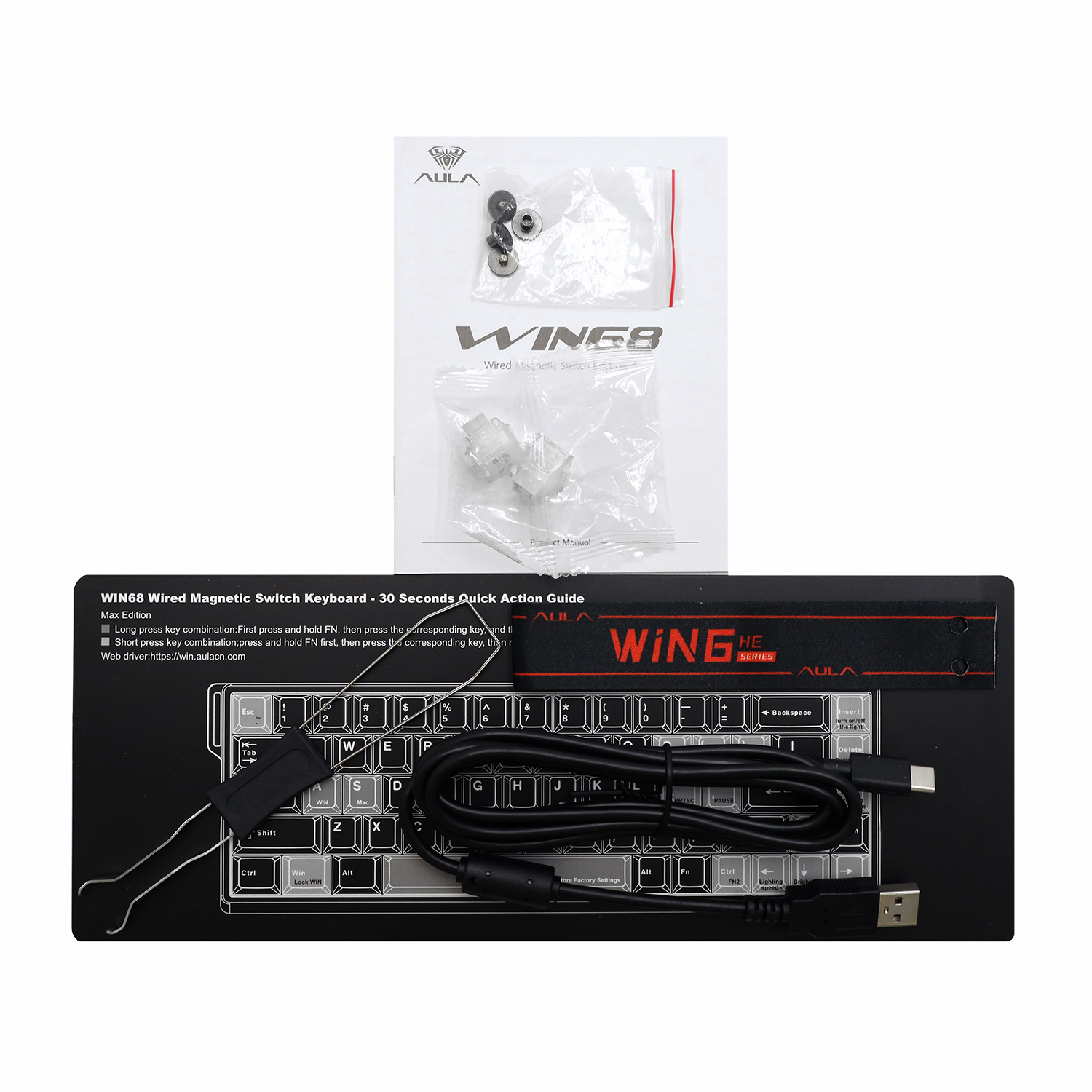 Keyboard USB AULA WIN68, Magnetic, Gray Wood switch, 68 keys EN/RU, wired, Grey-Black
