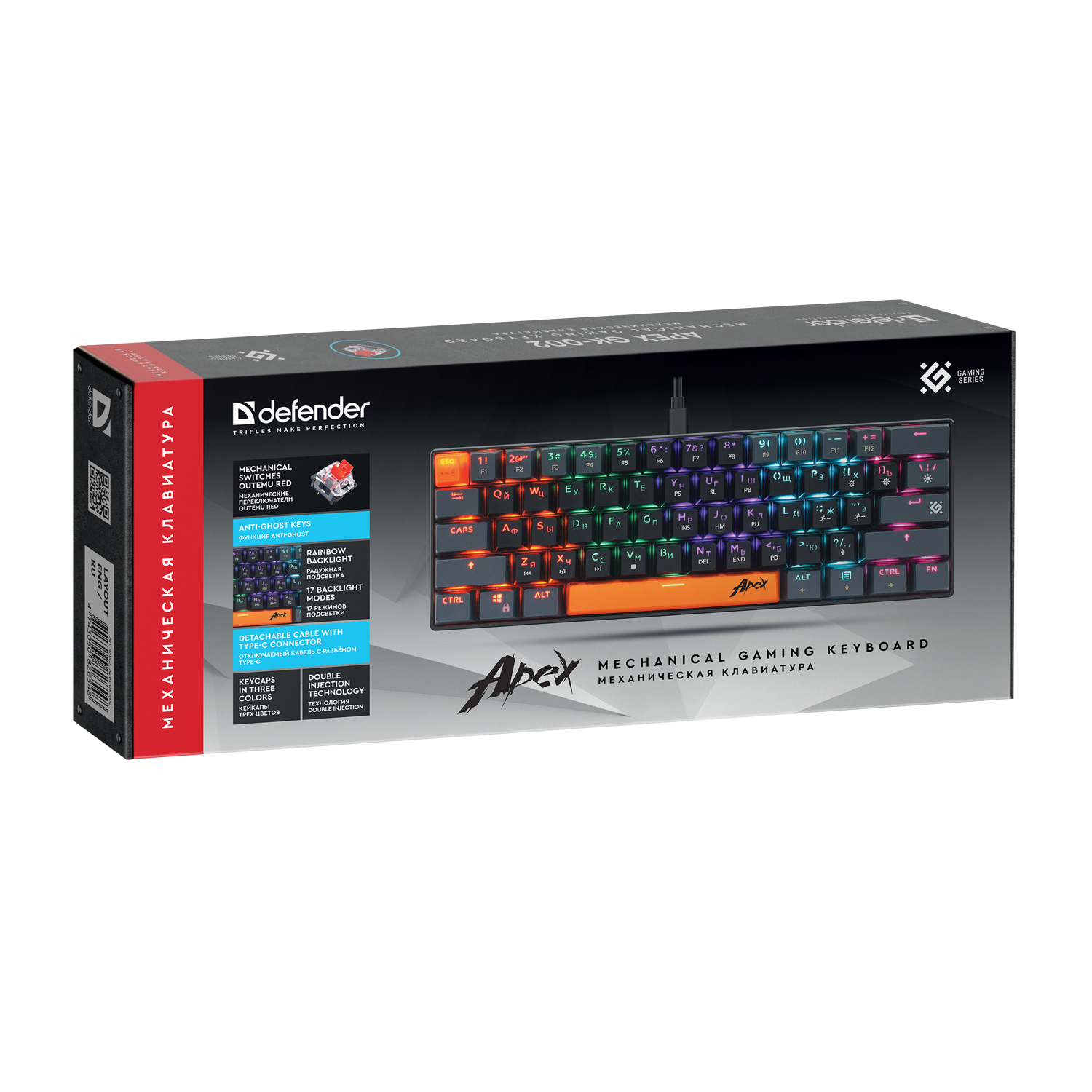 Клавиатура USB, Defender Apex GK-002 RU, Черный, (45003) KeyBoard Black