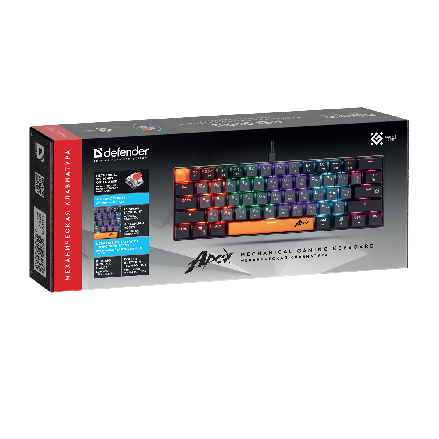 KeyBoard USB, Defender Apex GK-002 RU, Silver, (45002)