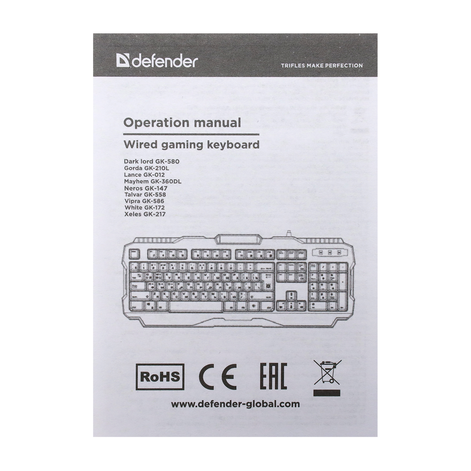 KeyBoard USB, Defender Dark Lord GK-580, black, (45580)