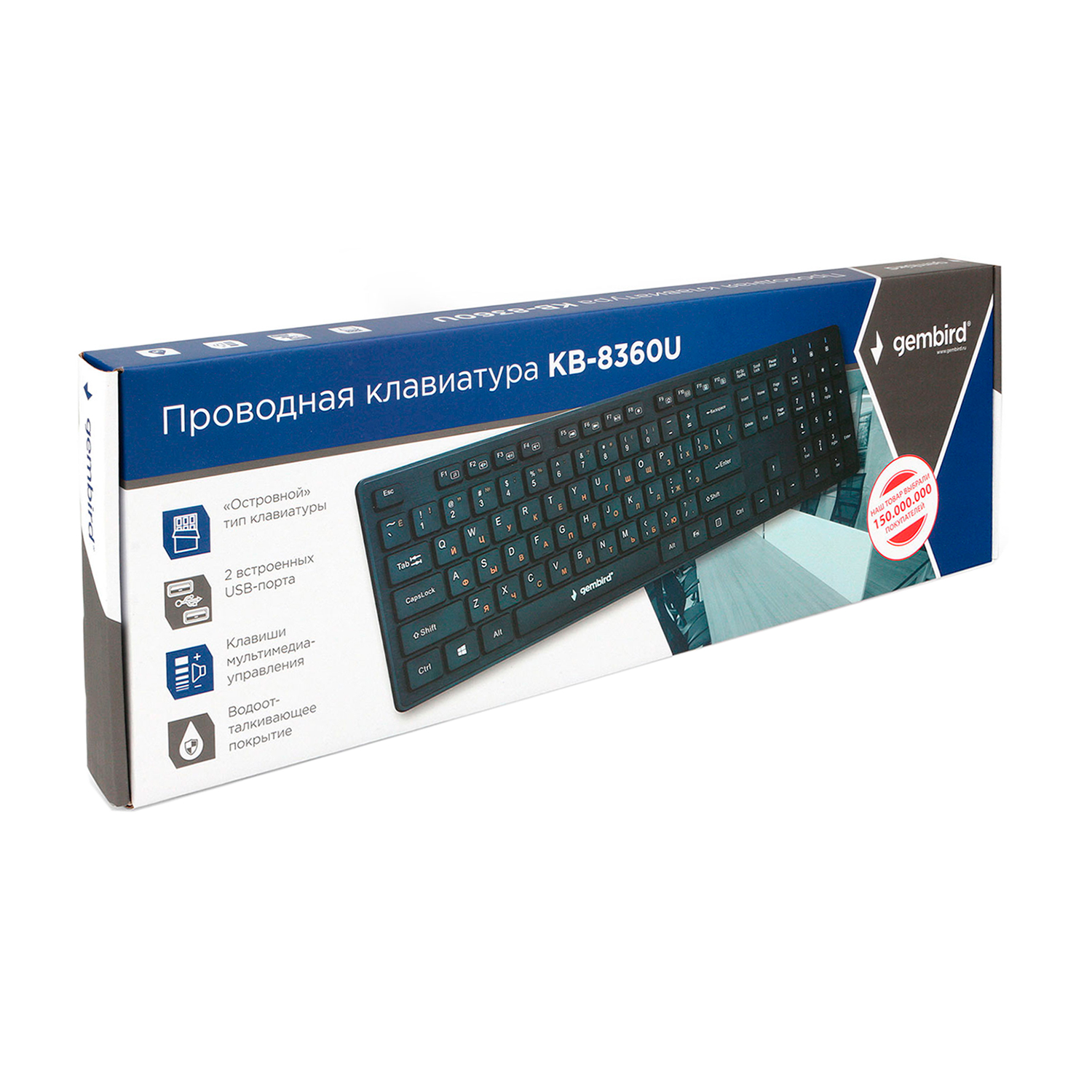 Клавиатура USB, Gembird KB-8360U, Черный KeyBoard 1.5 cable, 104 keys, 2*USB, black