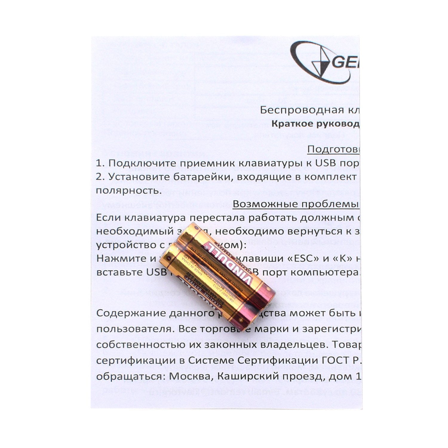 2х ААА (в комплекте)