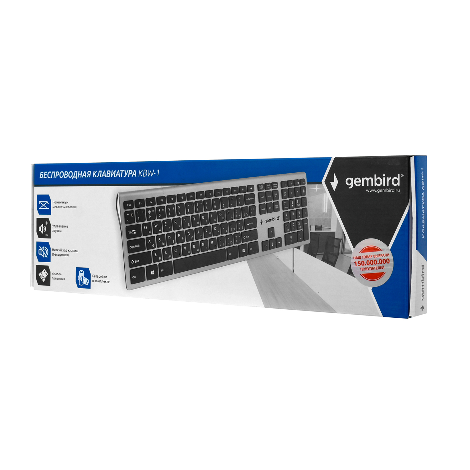 Клавиатура USB, Gembird KBW-1 KeyBoard wireless, gray