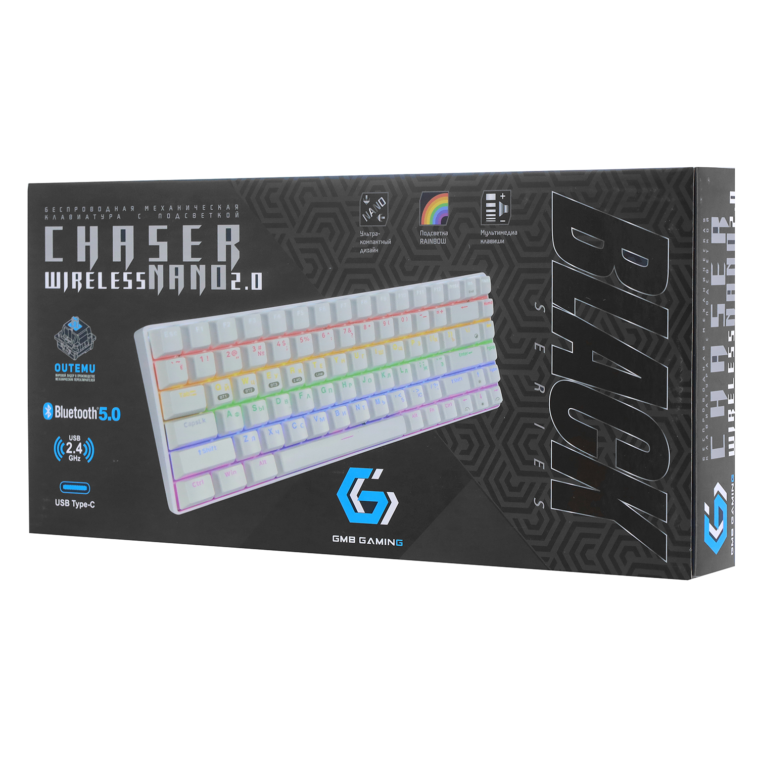 Клавиатура USB, Gembird KBW-G520L, Белый KeyBoard BT/2.4 GHz wireless,1.5m cable, USB white