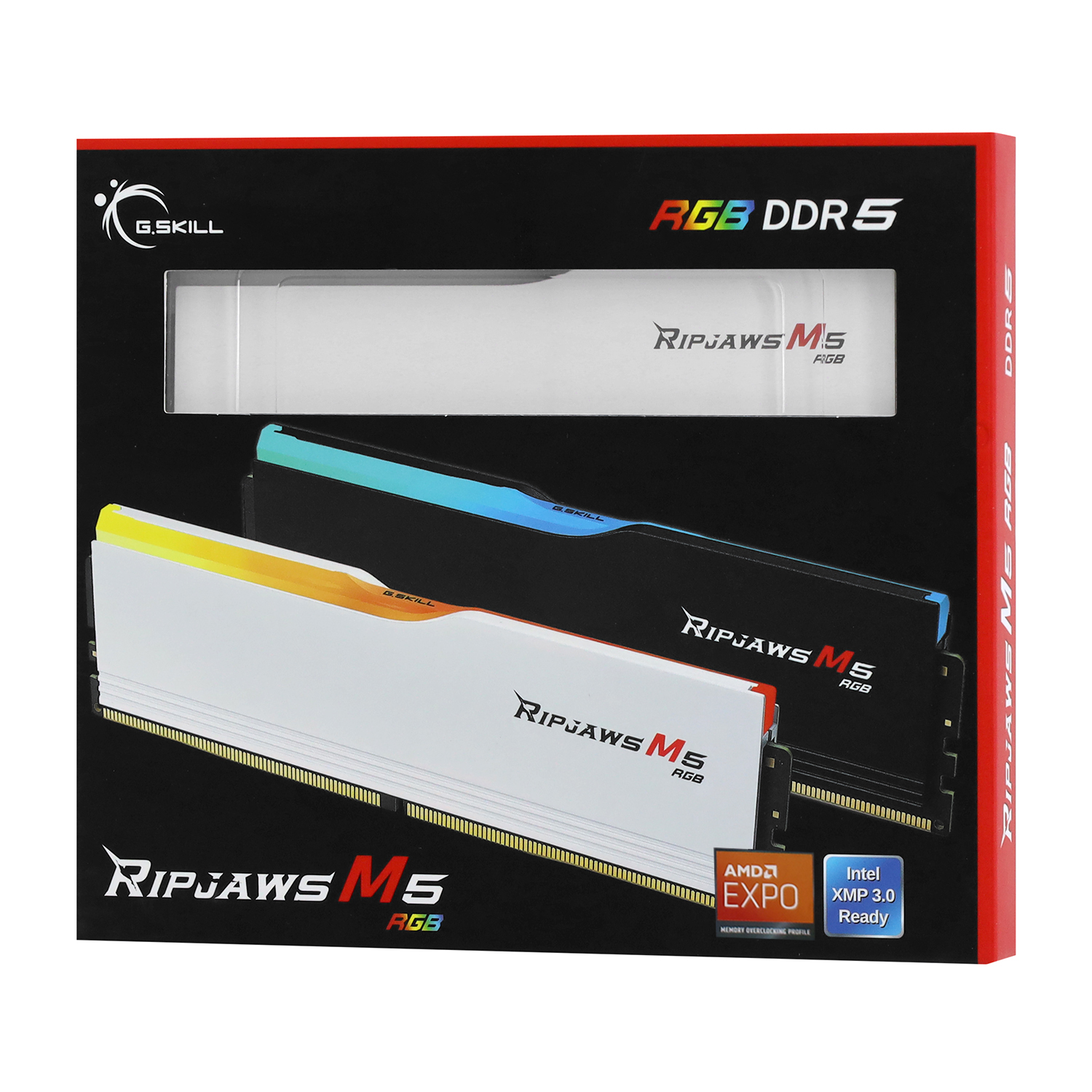 Комплект модулей памяти G.Skill RipJaws M5 RGB (AMD+Intel), F5-5200J4040A24GX2-RM5RW, DDR5, 48 GB, white DIMM kit <5200MHz> (2x24GB)