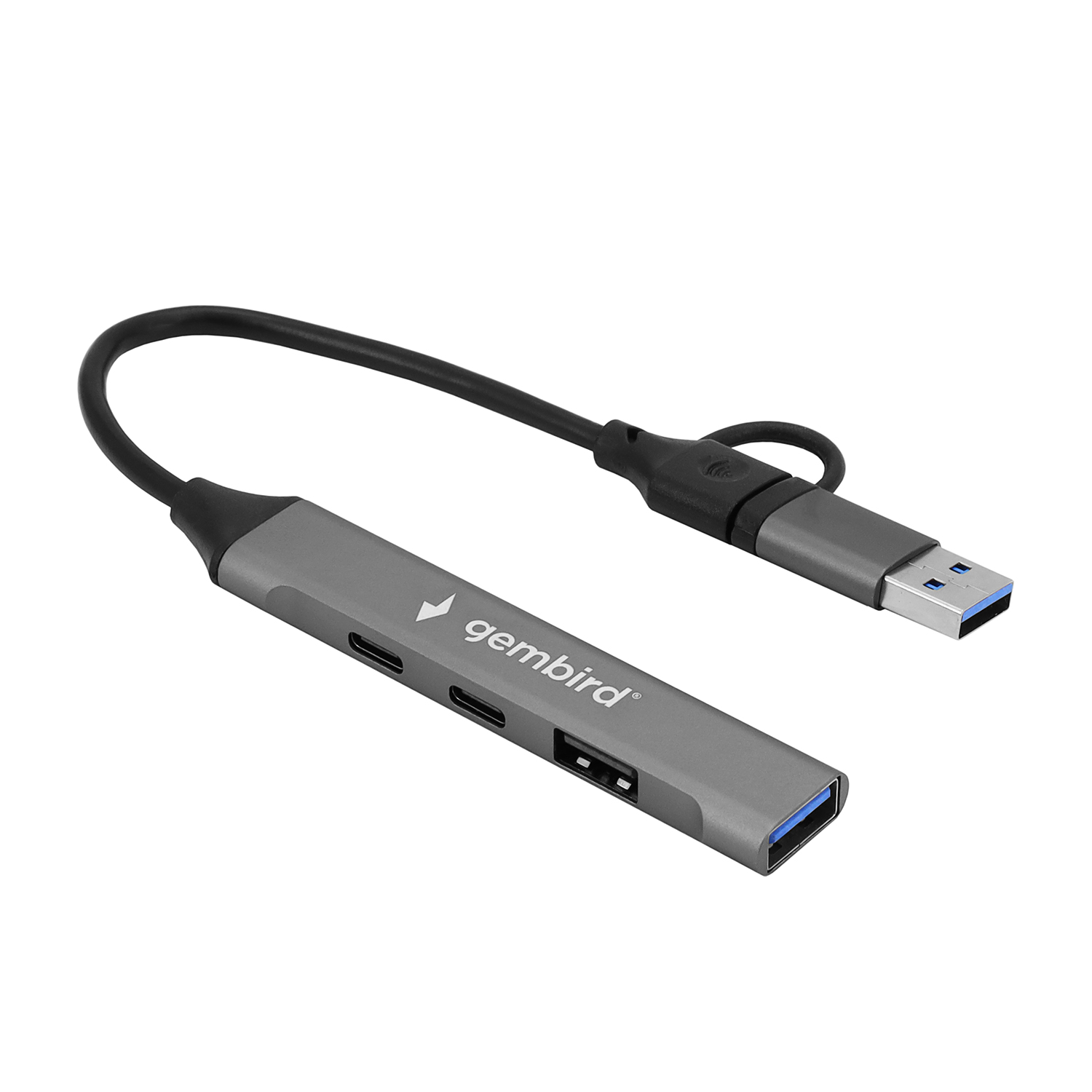 Концентратор USB Gembird UHB-C444 Hub 4 port, USB 3.0 2.0, 2хType-C, 1хUSB 3.0, 1хUSB 2.0, black