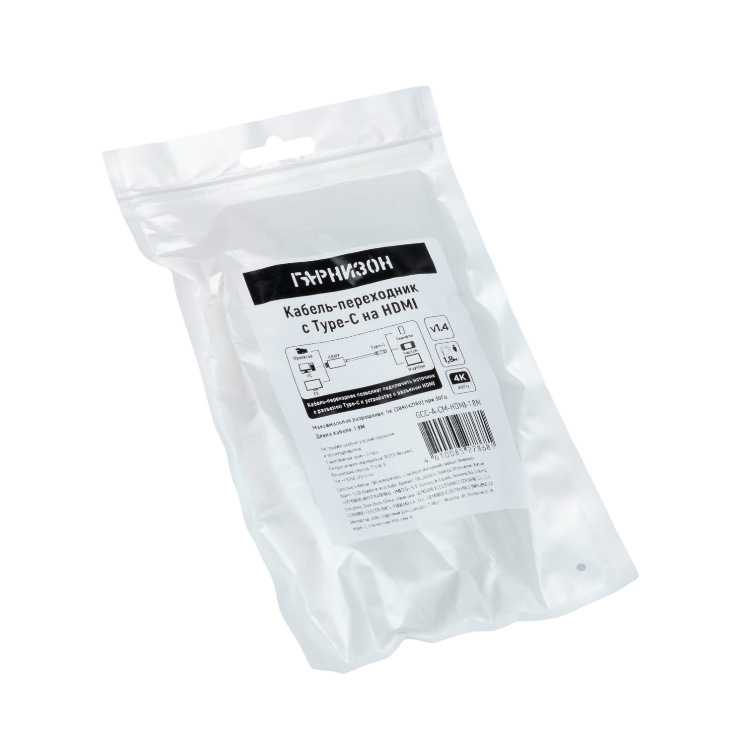 Конвертер Гарнизон GCC-A-CM-HDMI-1.8M USB Type-C 3.1 m -> HDMI v1.4, Черный Converter