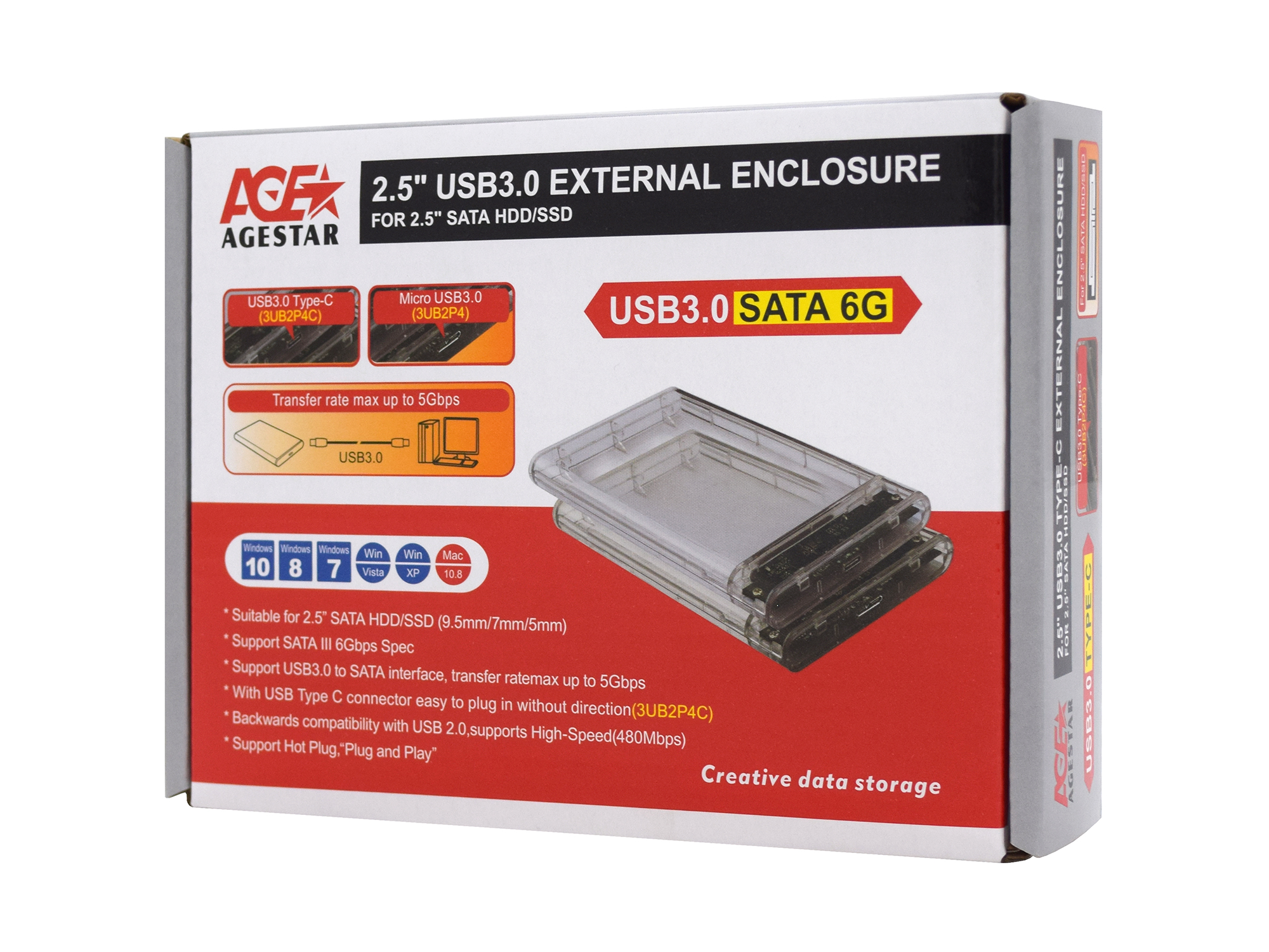 External 2,5" Case SATA to USB 3.0, Agestar 3UB2P4, power via USB