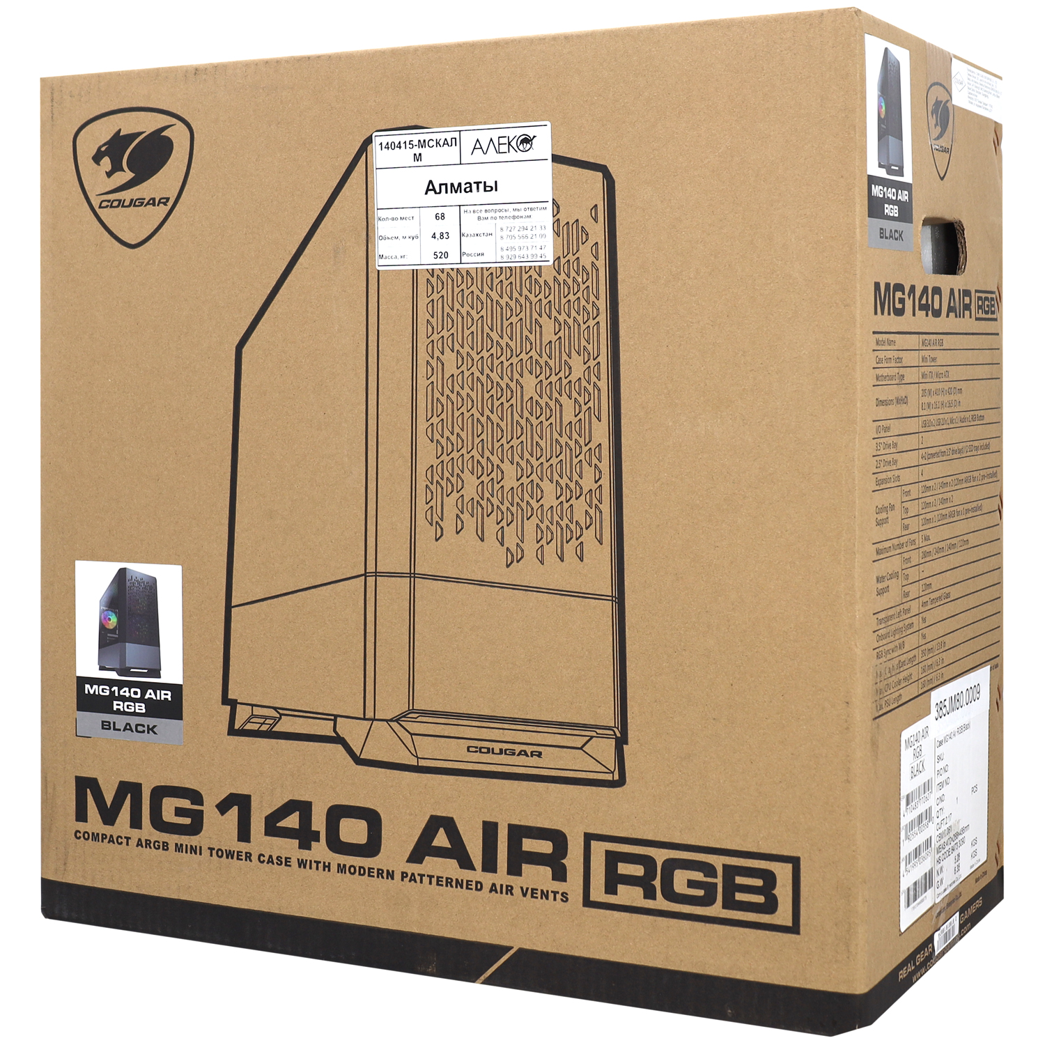 Case MATX midi tower Cougar MG140 Air RGB, (без БП), black