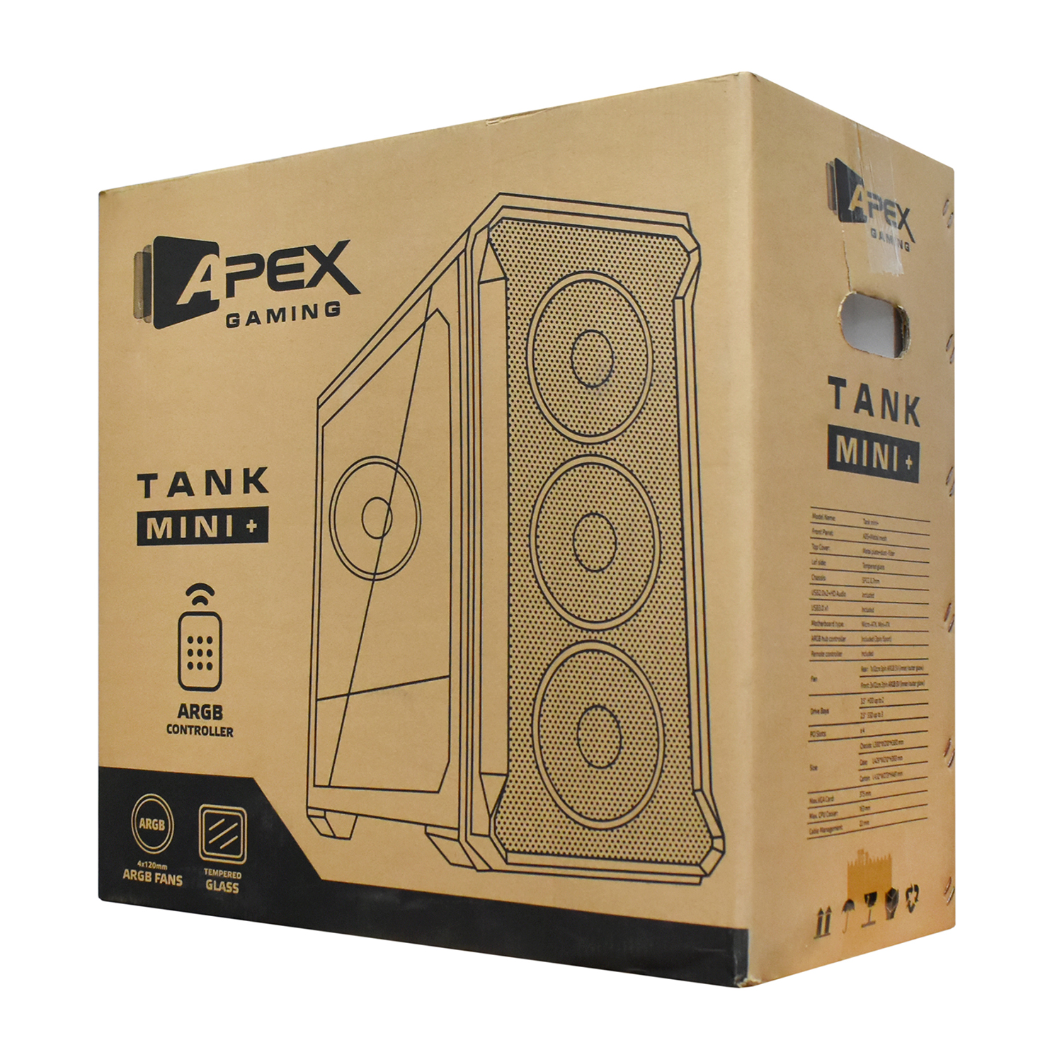 Case MATX mini tower APEX, Tank Mini+, 4*120mm ARGB fans + ARGB fan hub + remote control (без БП)