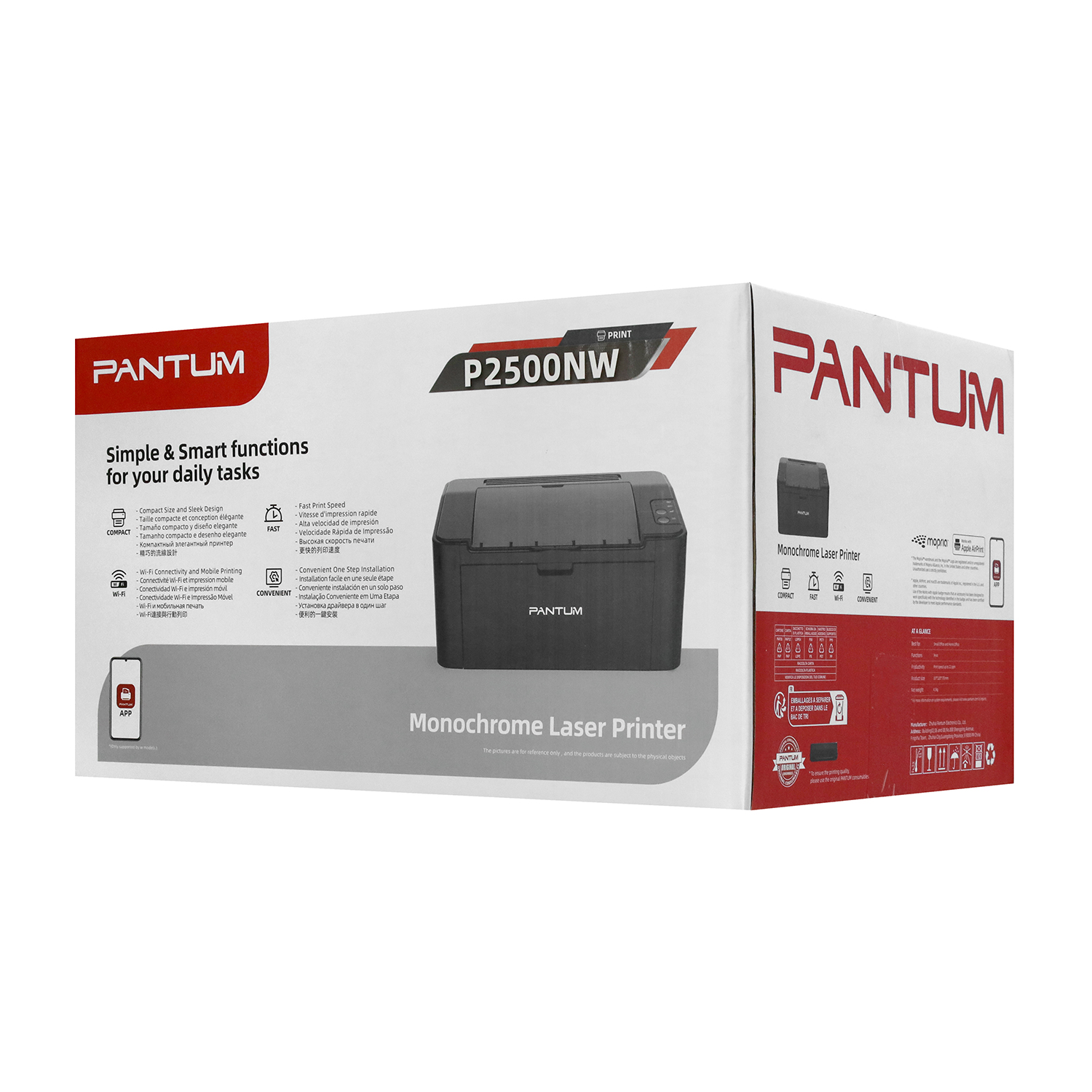 Лазерный принтер Pantum P2500NW Laser printer A4, 1200 dpi, 128MB, 22ppm, USB, Wi-Fi, LAN