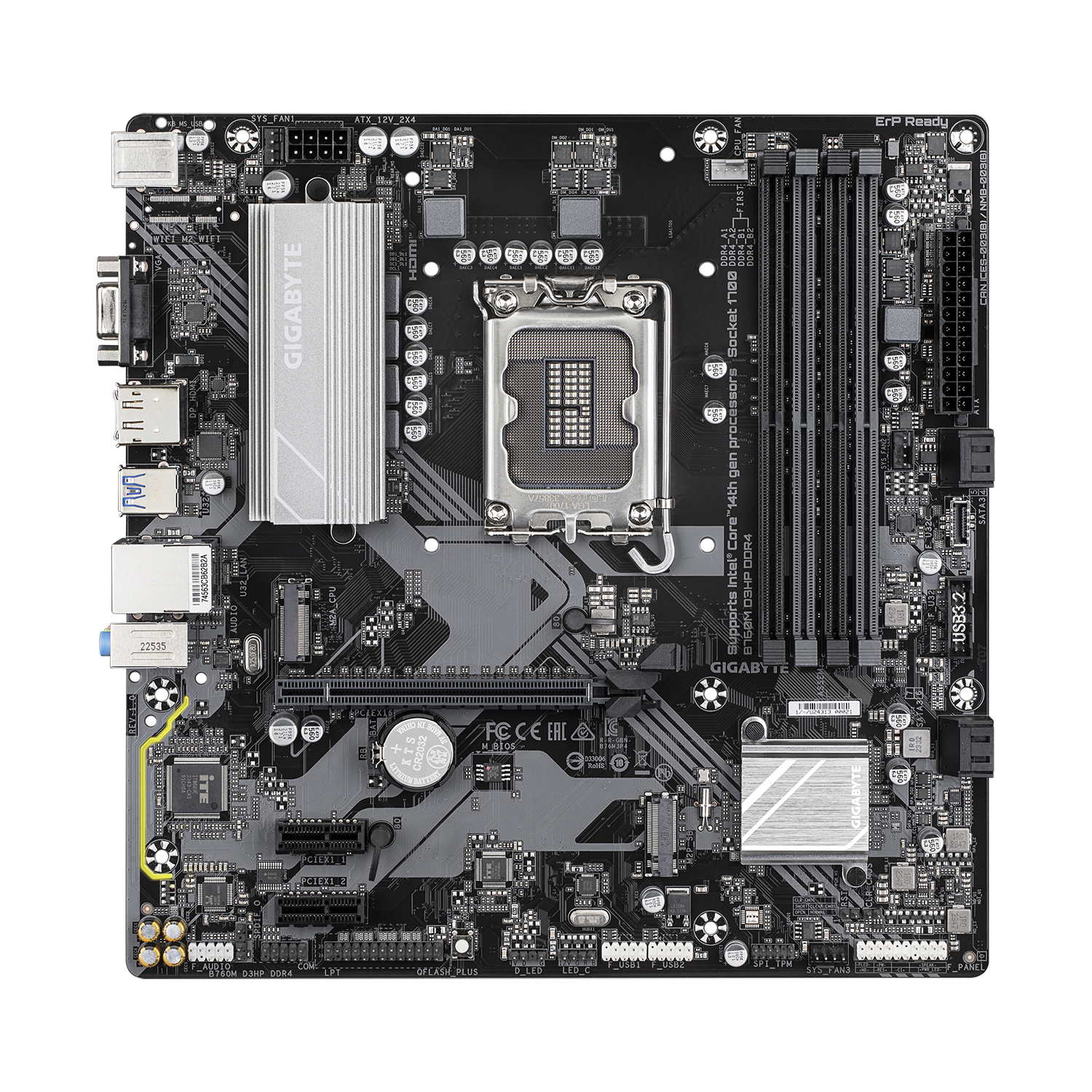 Материнская плата Gigabyte B760M D3HP MB Socket1700, MATX, iB760 (VGA+DP+HDMI), 4DDR5, 1PCIx16, 2PCIx1