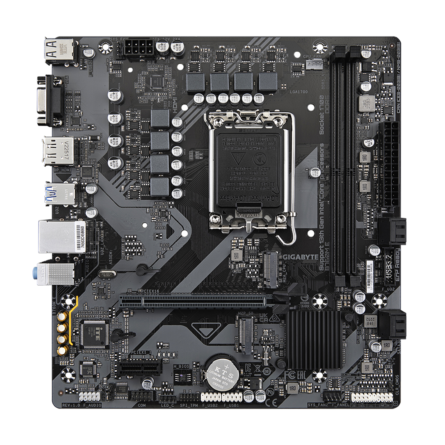 Материнская плата Gigabyte B760M E MB Socket1700, MATX, iB760 (VGA+DP+HDMI), 2xDDR5, PCIx16