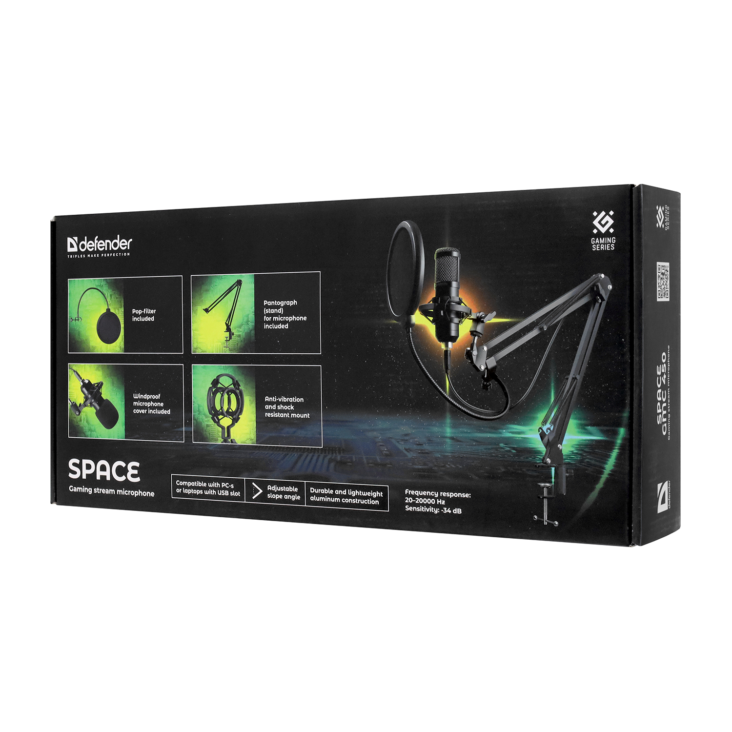 Микрофон Defender Space GMC 450, Черный Microphone 20-20000Hz, -34dB, 1.5m cable, black, (64645)