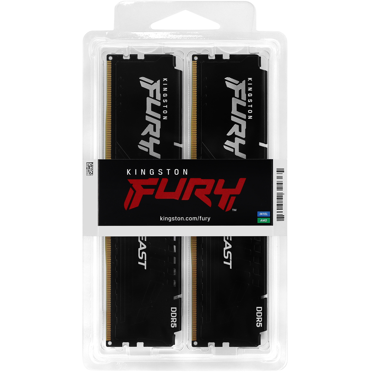 Комплект модулей памяти Kingston Fury Beast, KF552C40BBK2-32, DDR5, 32 GB, Черный DIMM kit <5200MHz> (2x16GB), CL38
