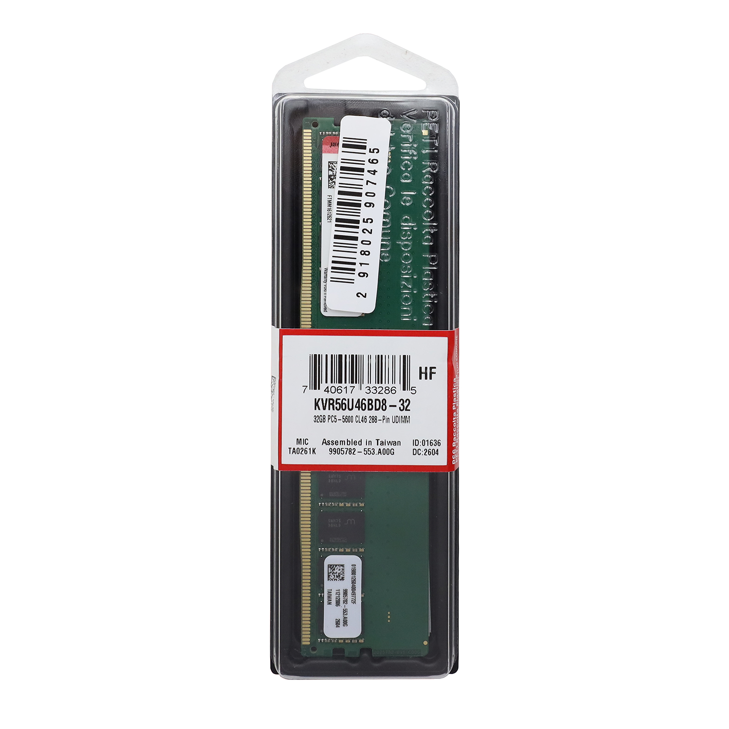 Модуль памяти, Kingston, KVR56U46BD8-32, DDR5, 32 GB DIMM <5600MHz> CL46