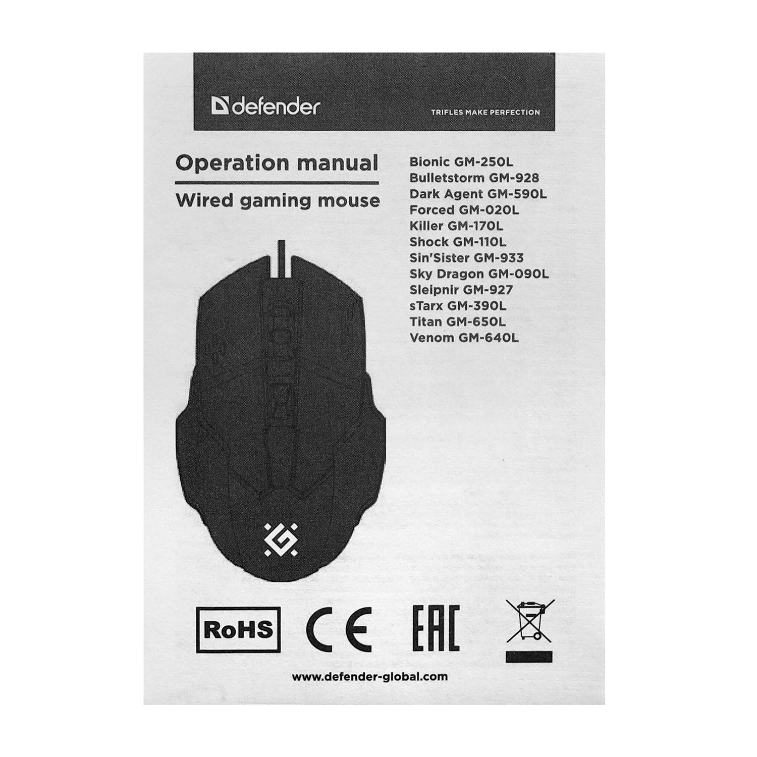 Mouse Defender Bulletstorm GM-928, Optical 1200-7200 dpi, 6 buttons, USB, black (52928)