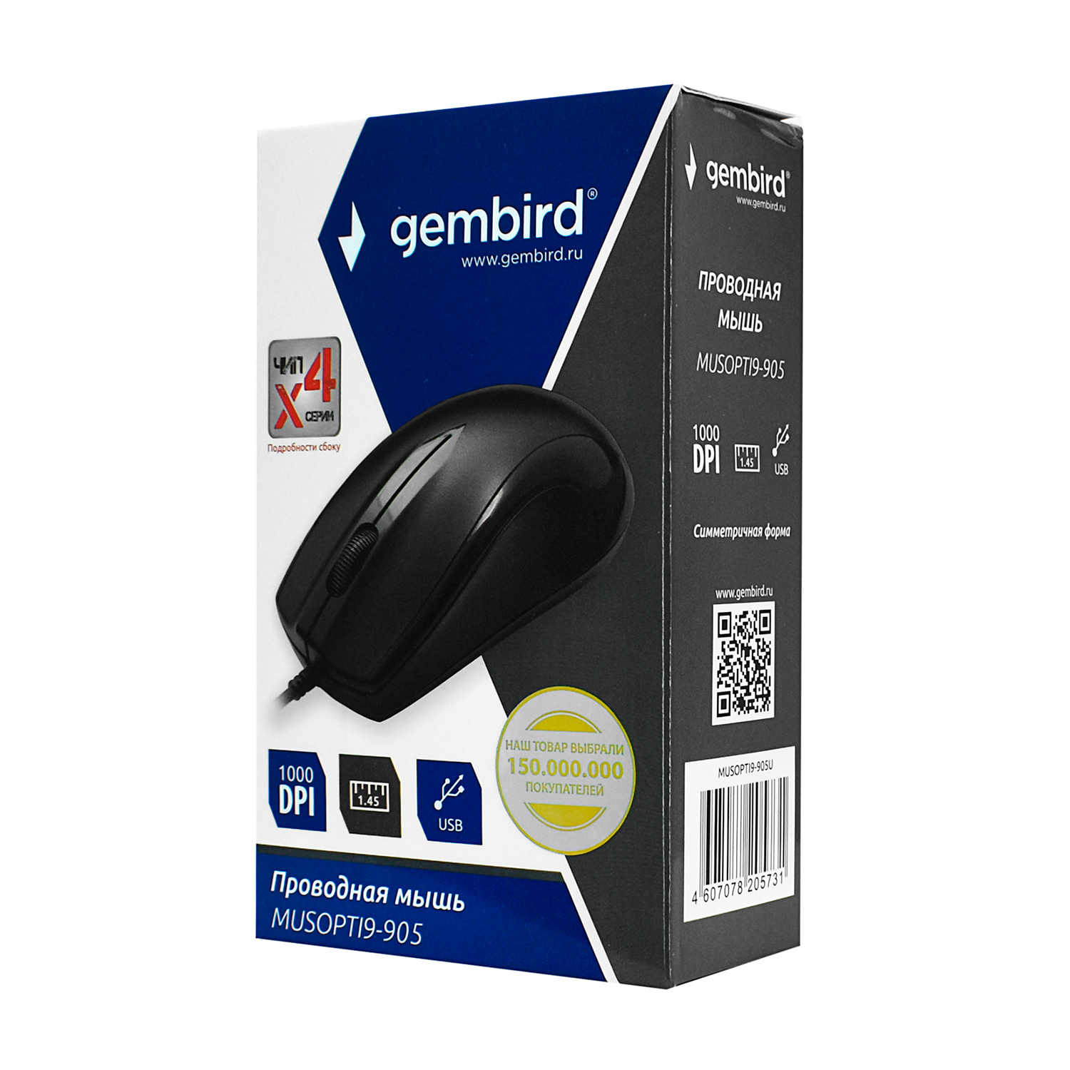Мышь Gembird MUSOPTI9-905U, Optical, 1000 dpi, USB, Черный Mouse black