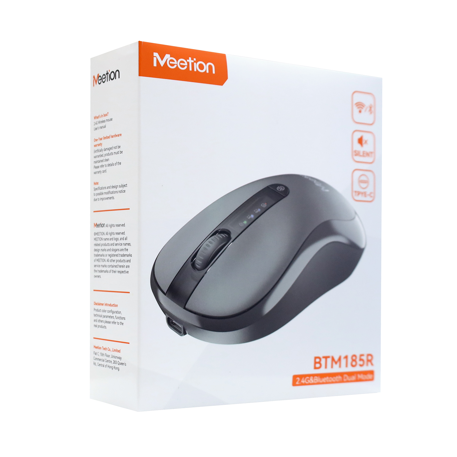 Mouse Meetion BTM185R, Wireless, optical, 3200DPI, 4 Button, 300mAh, USB, 2.4 GHz/BT, Black