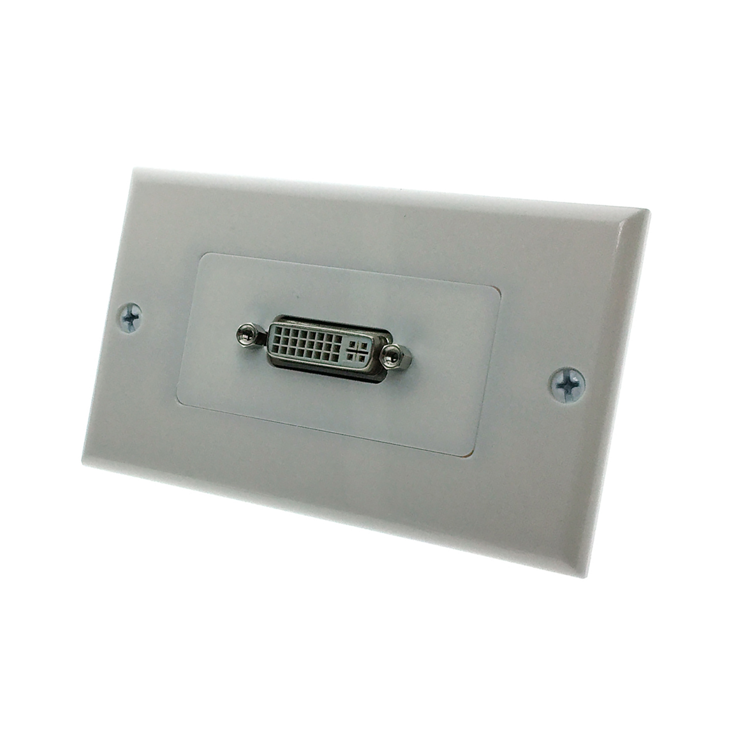 Настенная панель-переходник DVI, исполнена в виде нестандартной стенной панели одинарного типоразмера для скрытой проводки. Устанавливается в распаечную коробку в стене или на кабель канал.