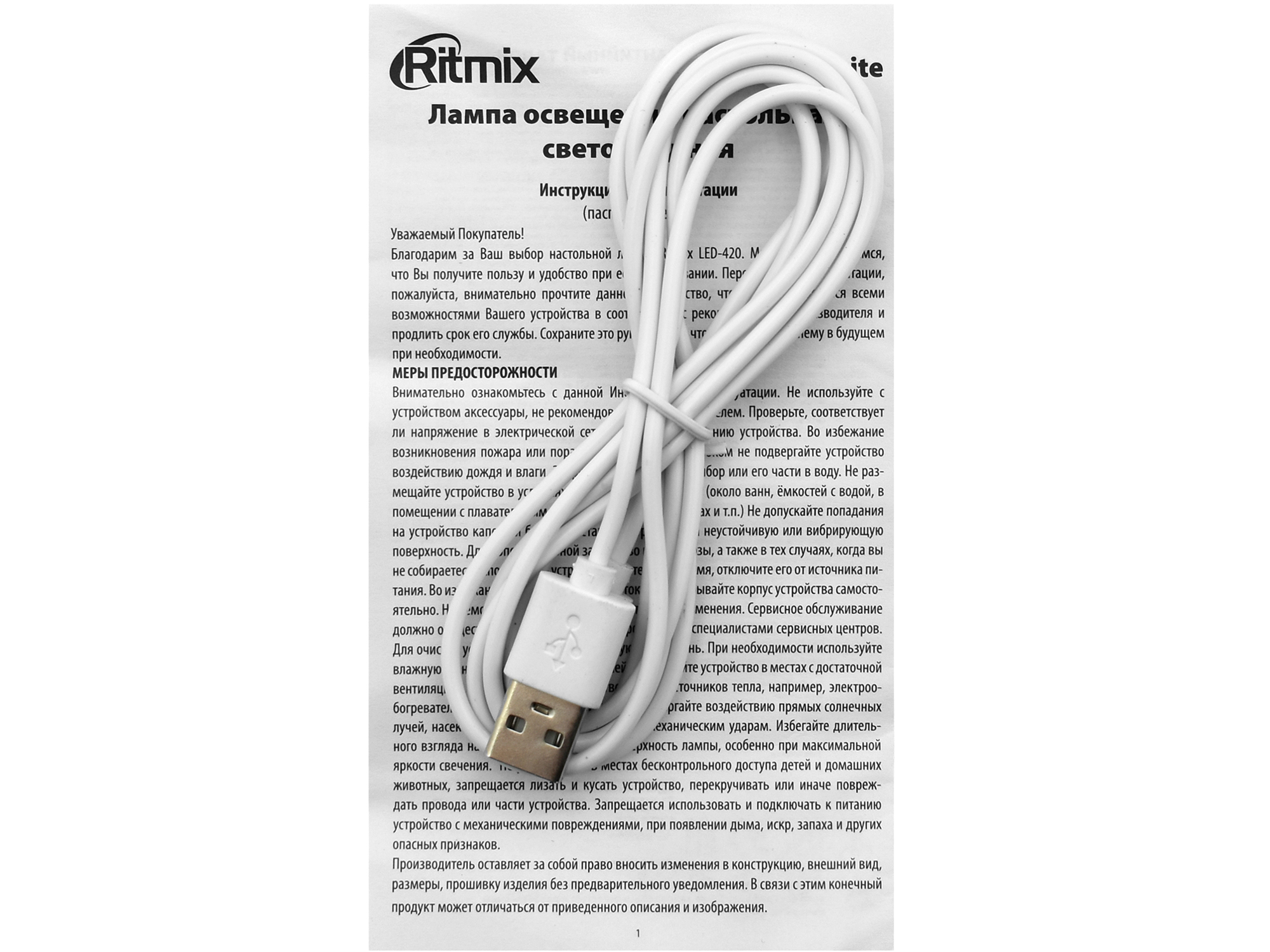Настольная лампа, Ritmix LED-210 White USB LED light, 14 LED, USB power, настольная