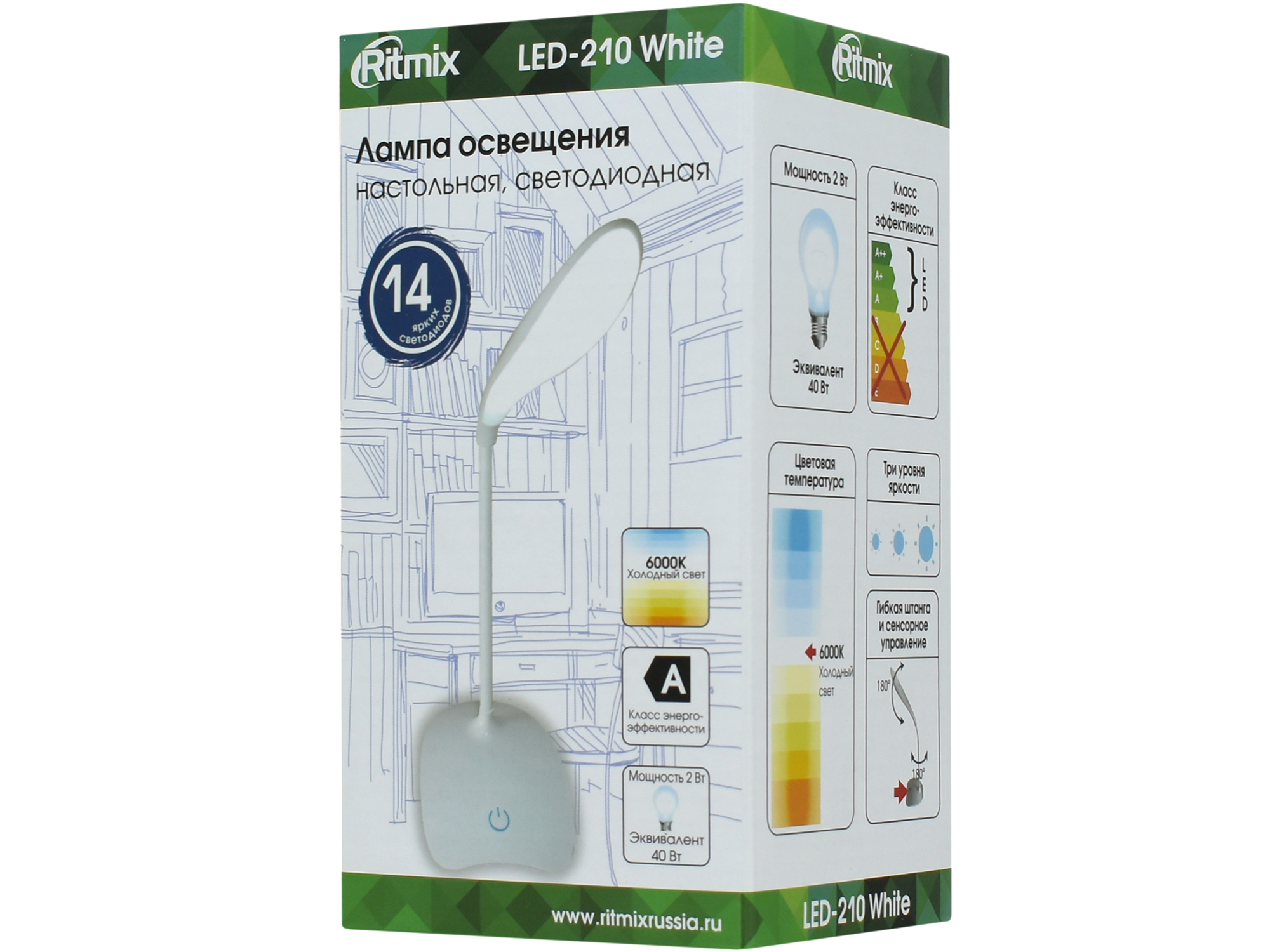 USB LED light, Ritmix LED-210 White, 14 LED, USB power, настольная лампа