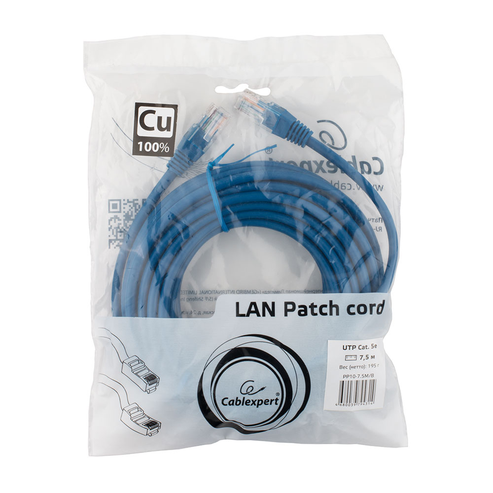 Патч-корд Cablexpert PP10-7.5M/B, синий Cable Patch cord UTP 5e-Cat 7.5 m