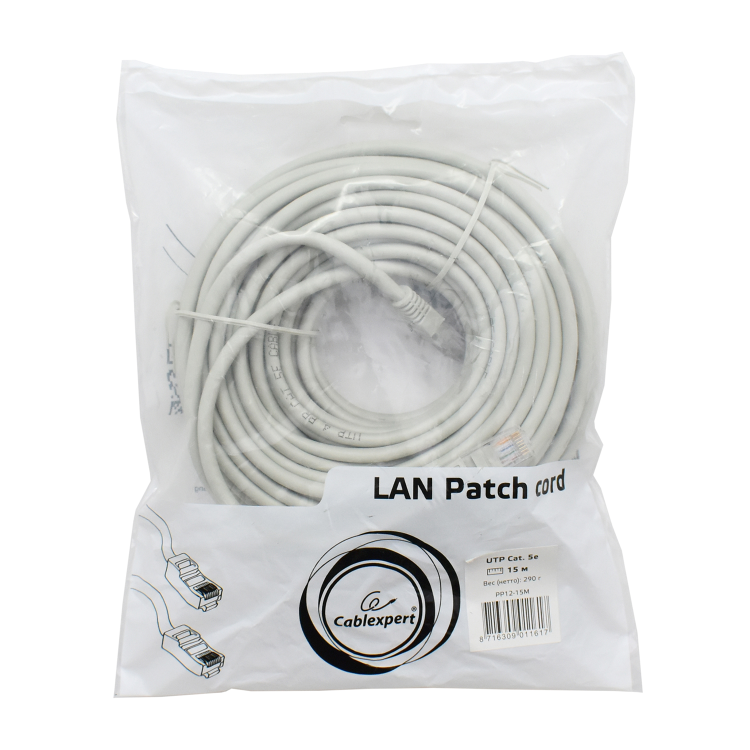 Патч-корд Cablexpert PP12-15M, серый Cable Patch cord UTP 5e-Cat 15 m
