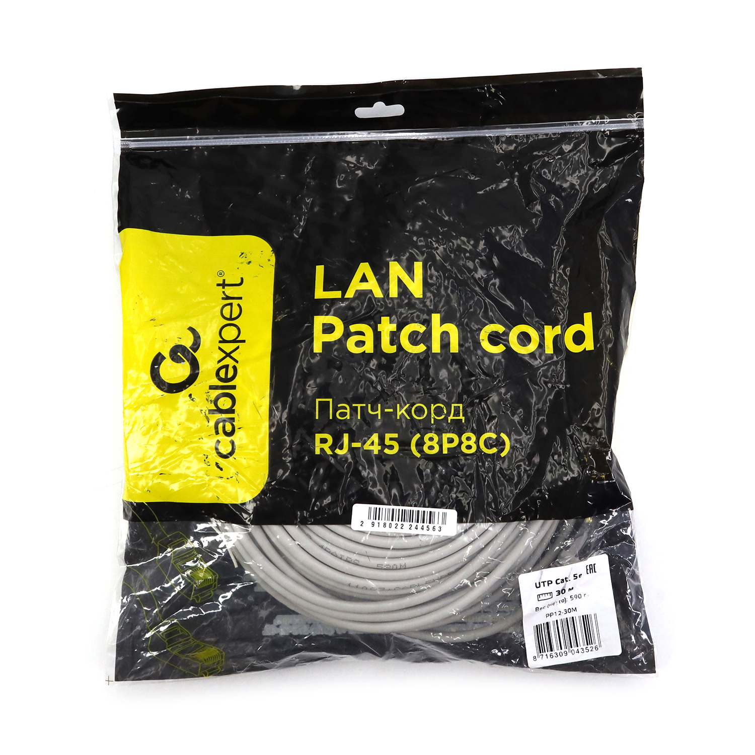 Патч-корд Cablexpert PP12-30M, серый Cable Patch cord UTP 5e-Cat 30 m