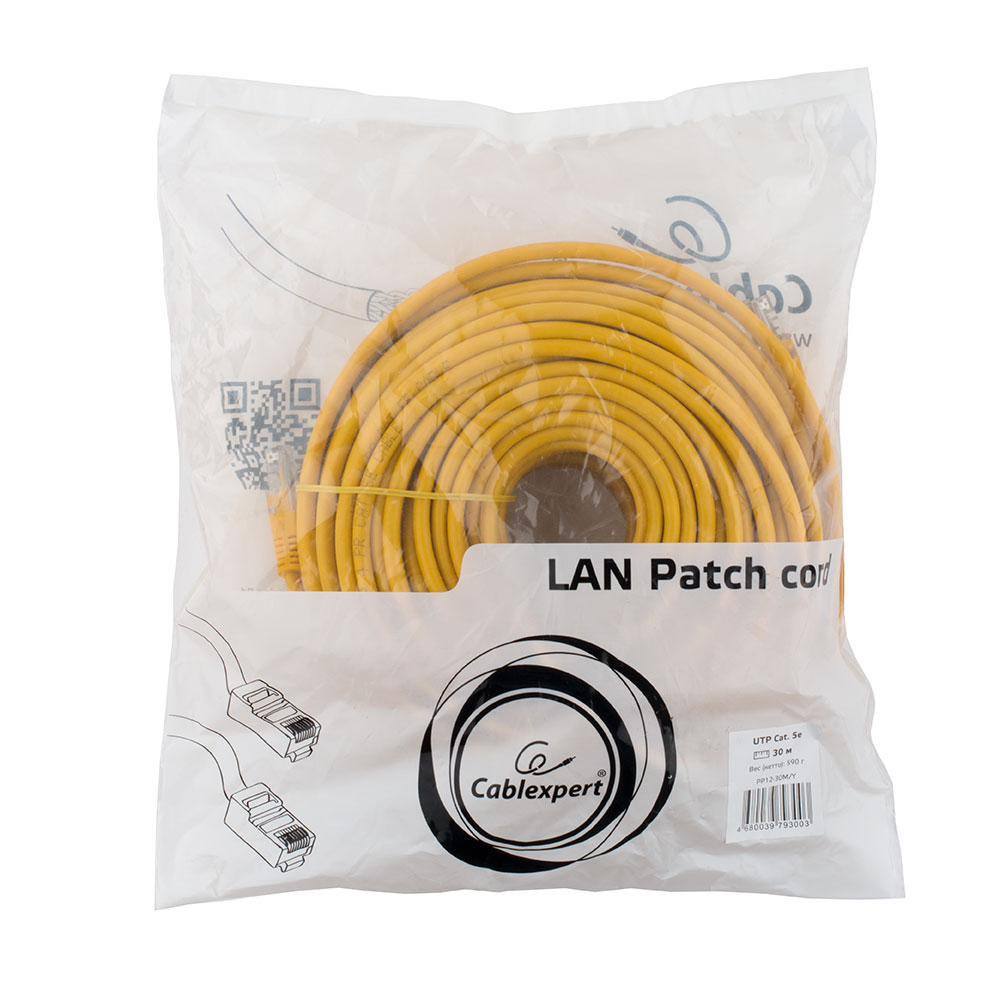 Патч-корд Cablexpert PP12-30M/Y, желтый Cable Patch cord UTP 5e-Cat 30 m