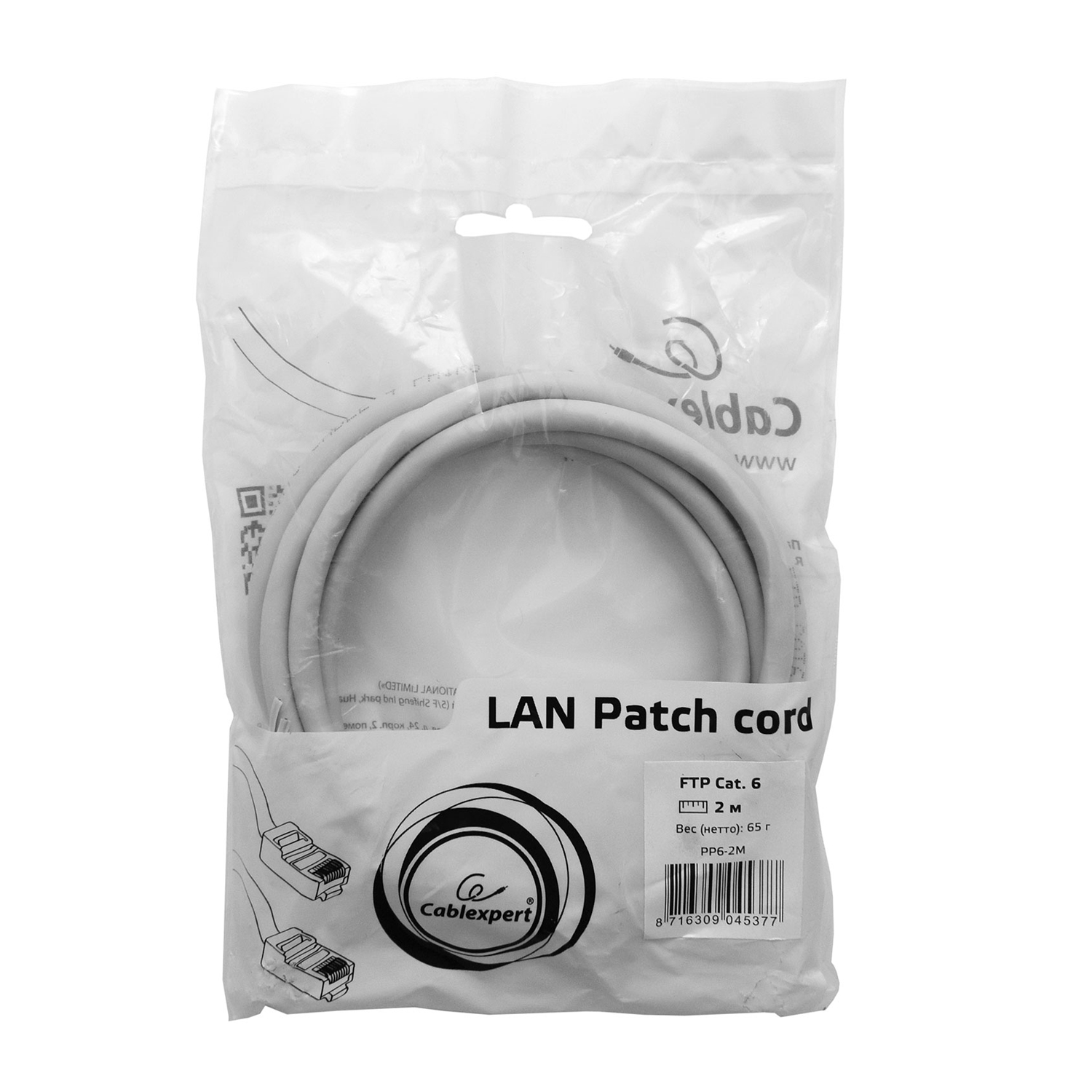 Патч-корд Cablexpert PP6-2M, серый Cable Patch cord FTP 6e-Cat 2 m