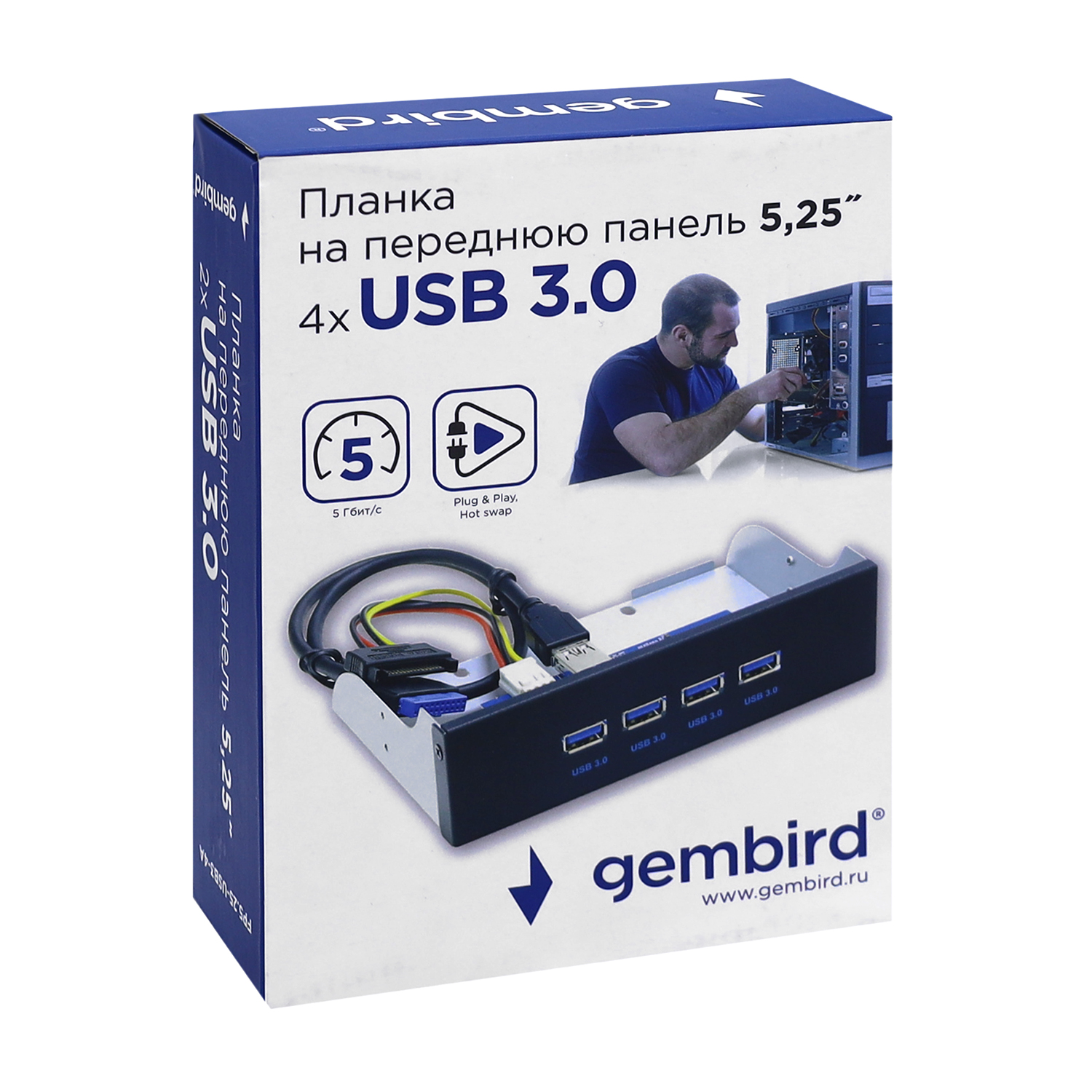 Планка 5.25 Gembird FP5.25-USB3-4A Plank Type-A 4USB 3.0