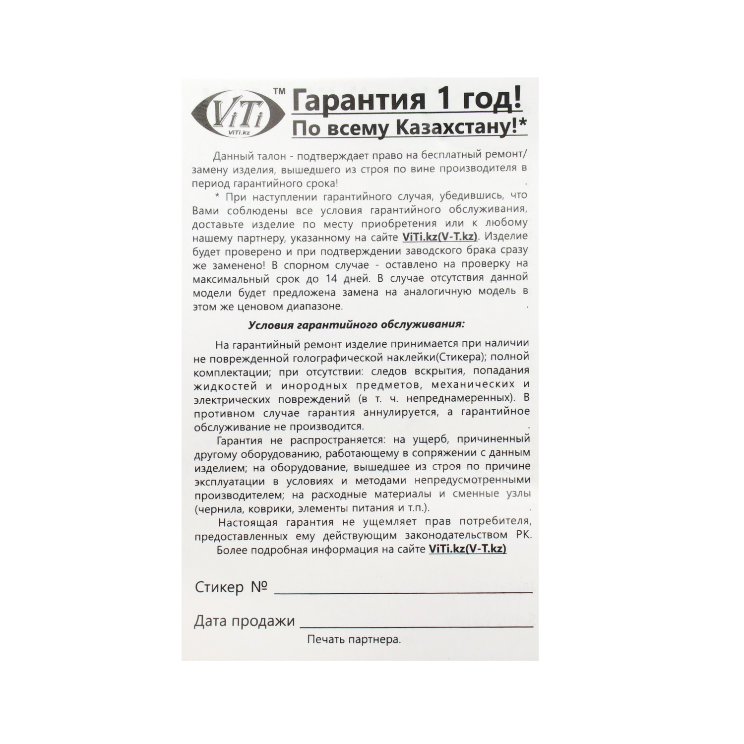 Гарантия: 1 год
